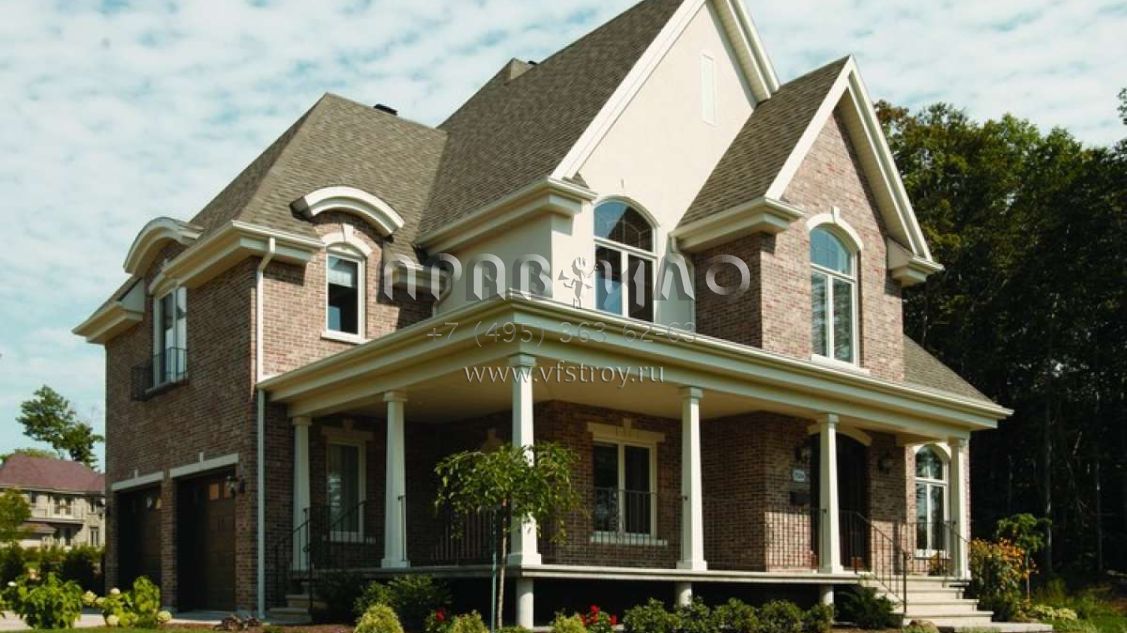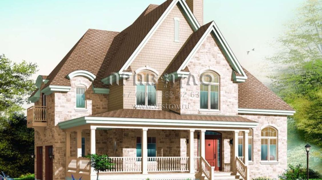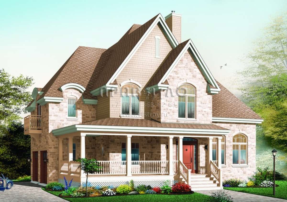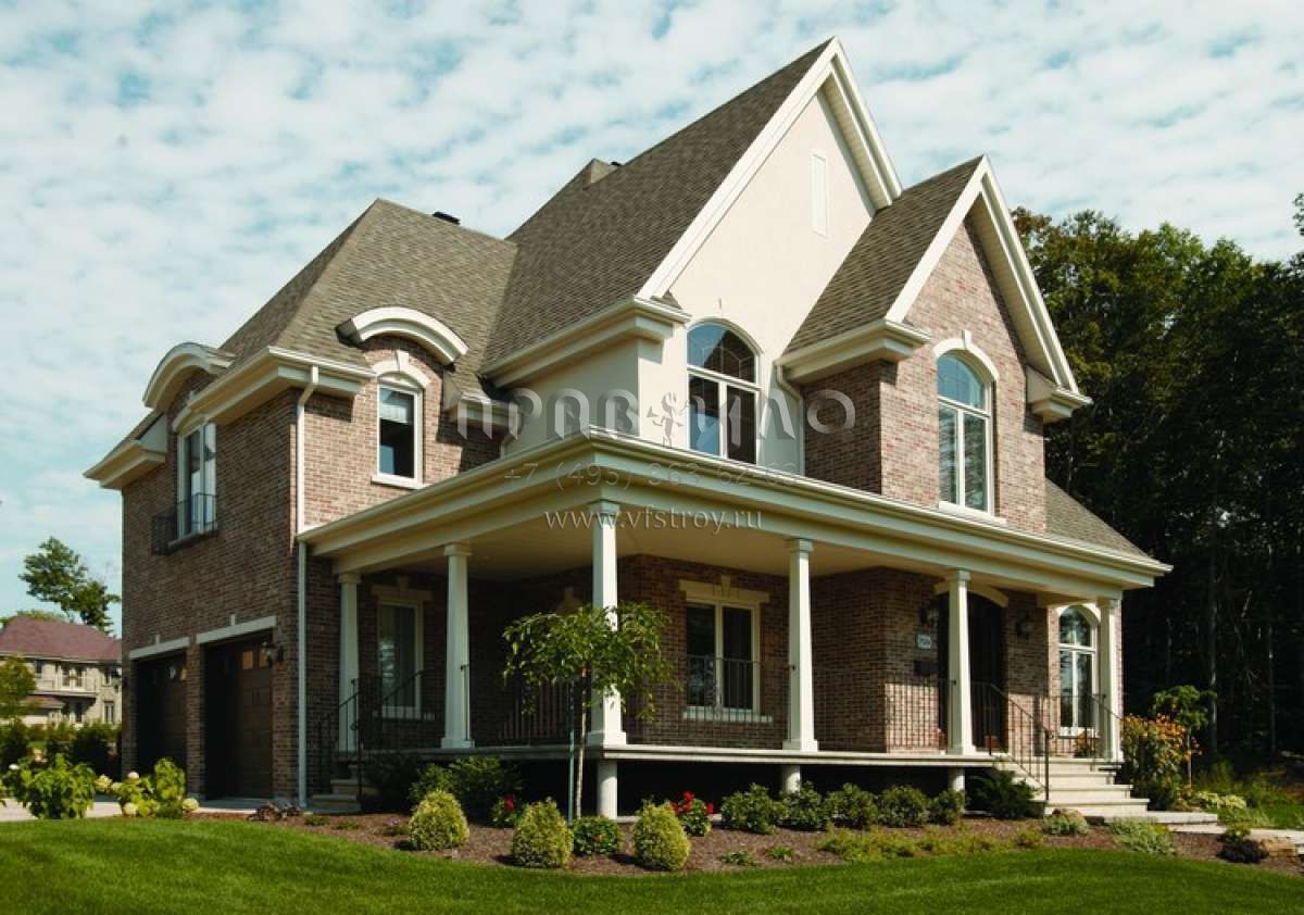 Это проект двухэтажного дома с гаражом на две машины жилой площадью 309 кв.м. Длина дома 16.5 м, ширина 15.2 м, высота 12.8 м. В доме четыре спальни и два санузла.