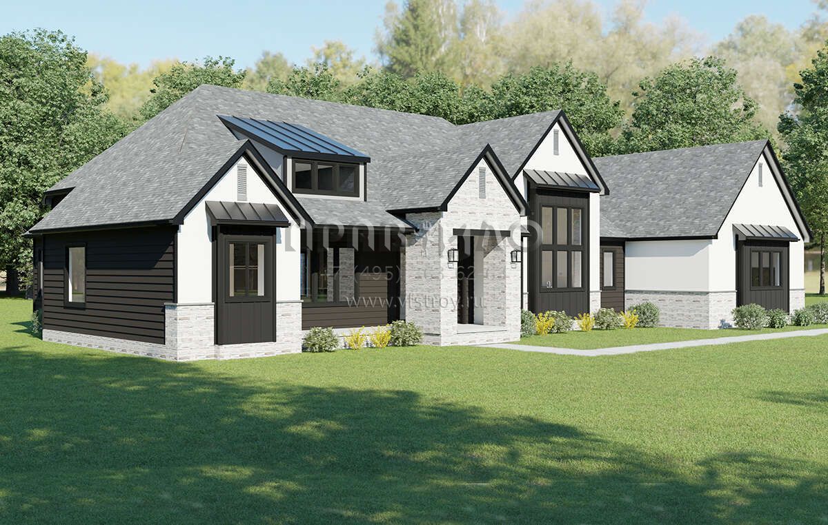 Поскольку этот проект разрабатывался иностранными архитекторами, для строительства дома требуется переработка проекта под действующие в России нормы. Данные визуализации проекта представлены для ознакомления с концепцией проекта. Проект разработан американским архитектурным бюро и представлен America's Best House Plans.
