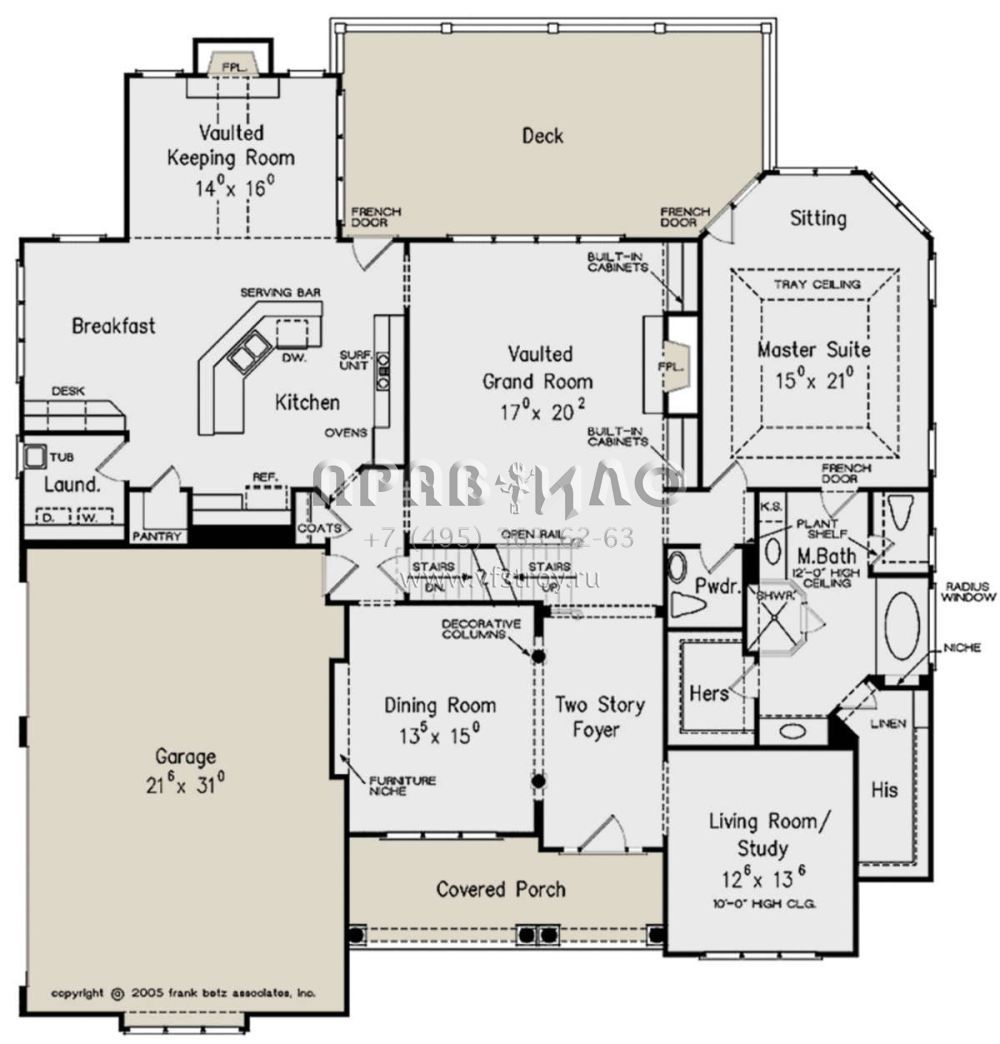 Проект двухэтажного дома с гаражом на три и более машин в стиле Ранчо S5-309 (8594-00168)