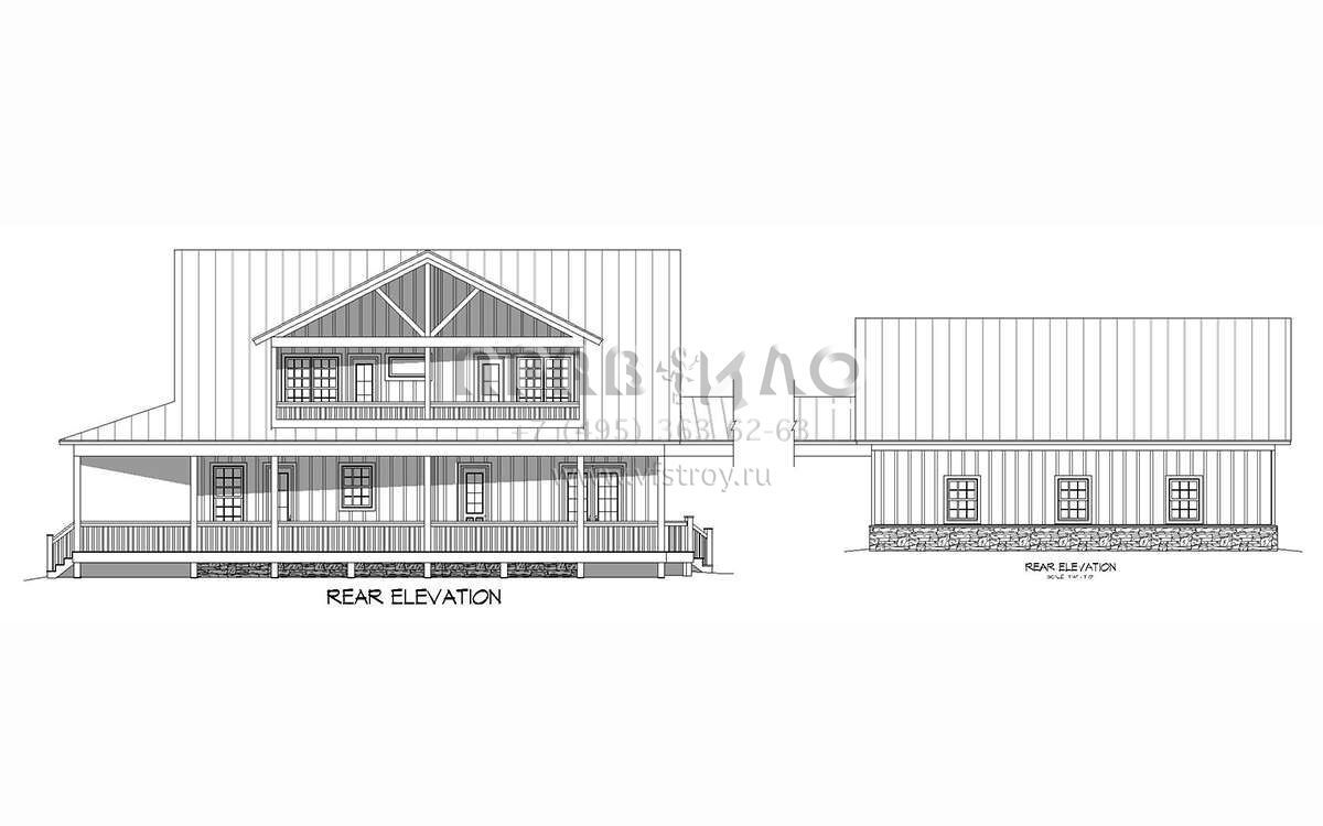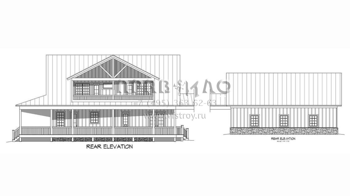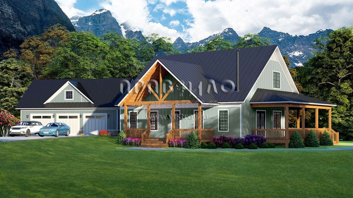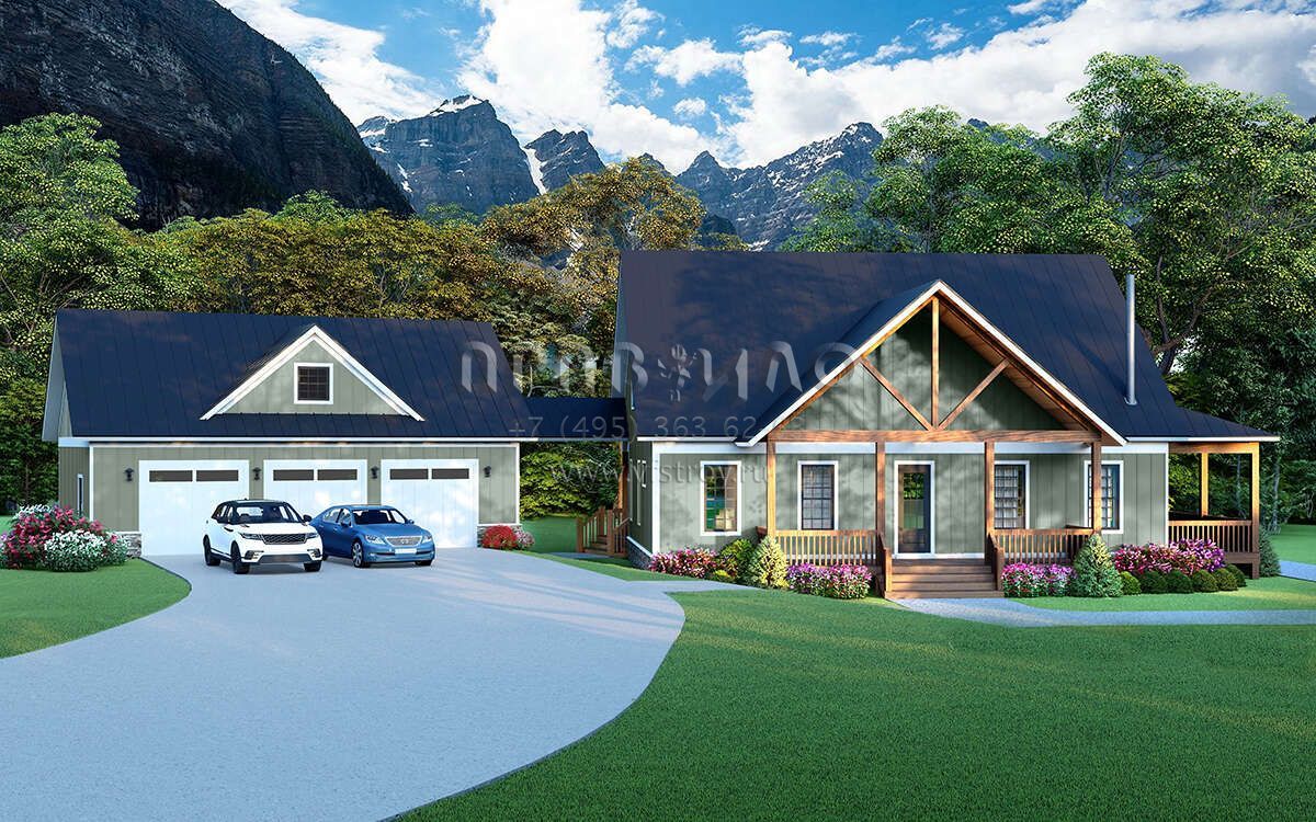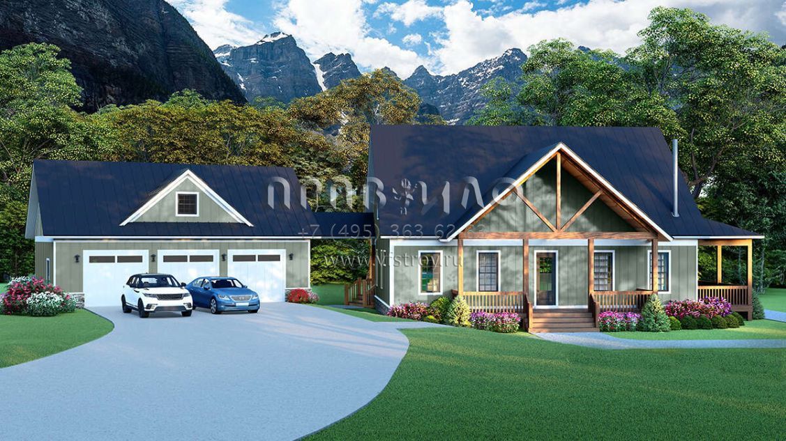 Проект двухэтажного дома с гаражом на три и более машин в стиле Ранчо S5-309 (940-00740)