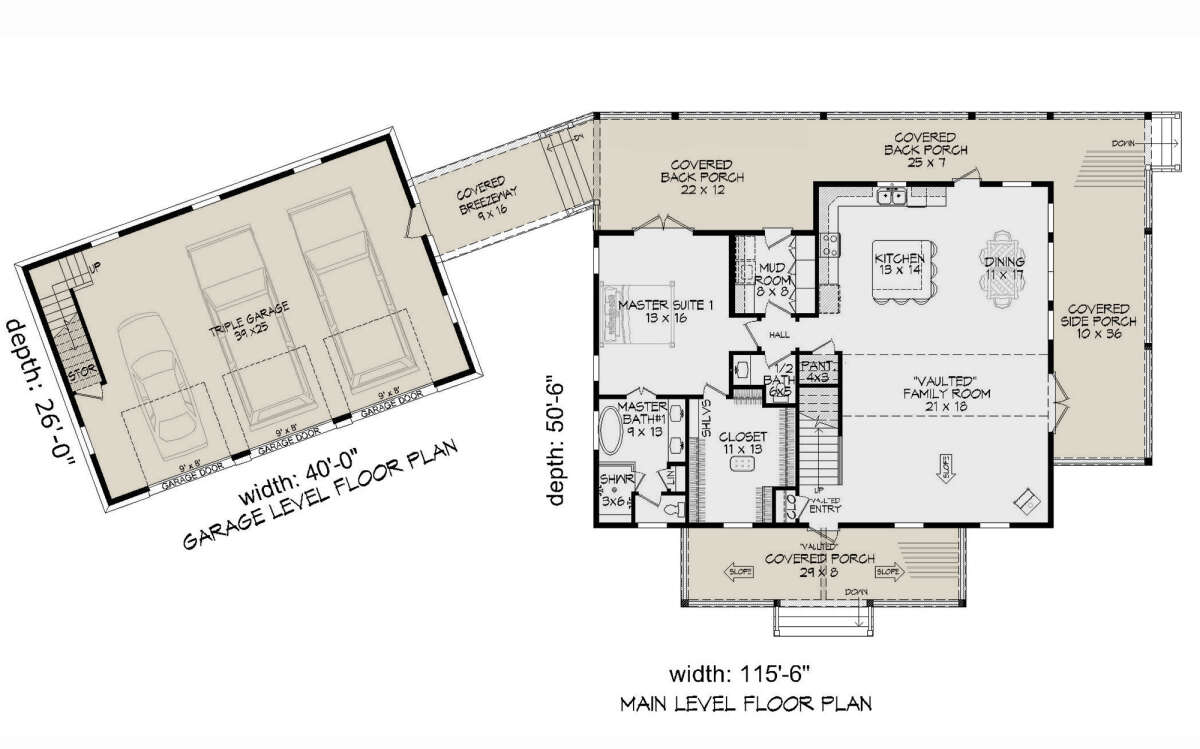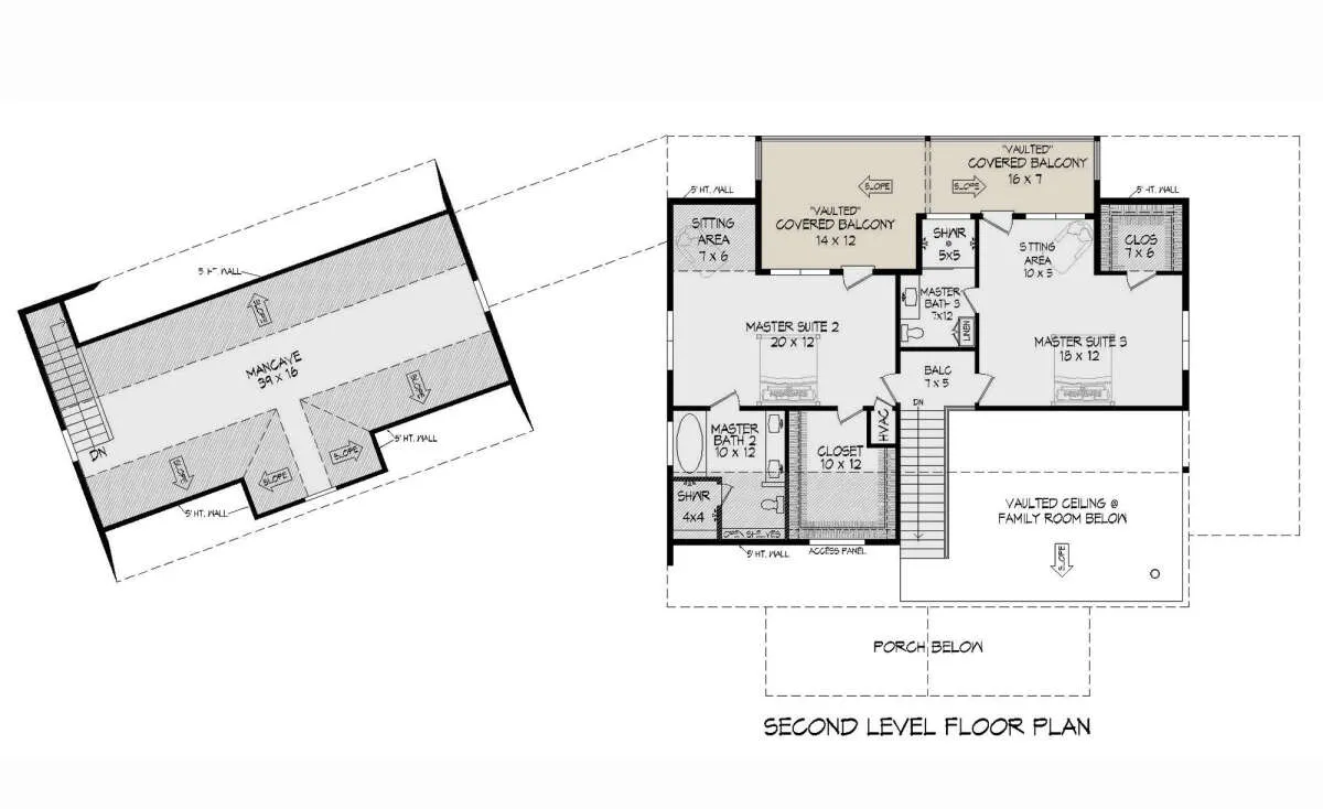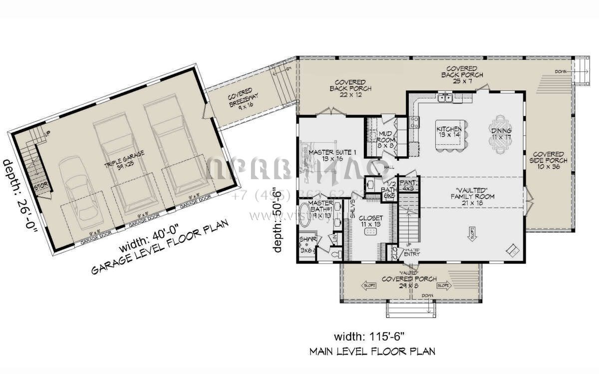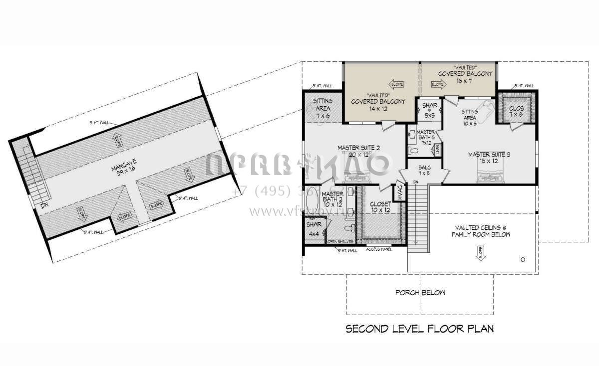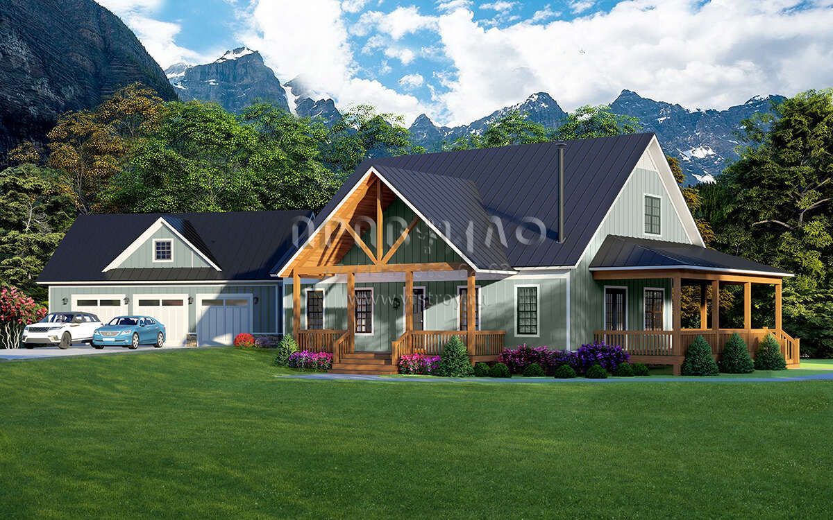 Проект двухэтажного дома с гаражом на три и более машин в стиле Ранчо S5-309 (940-00740)