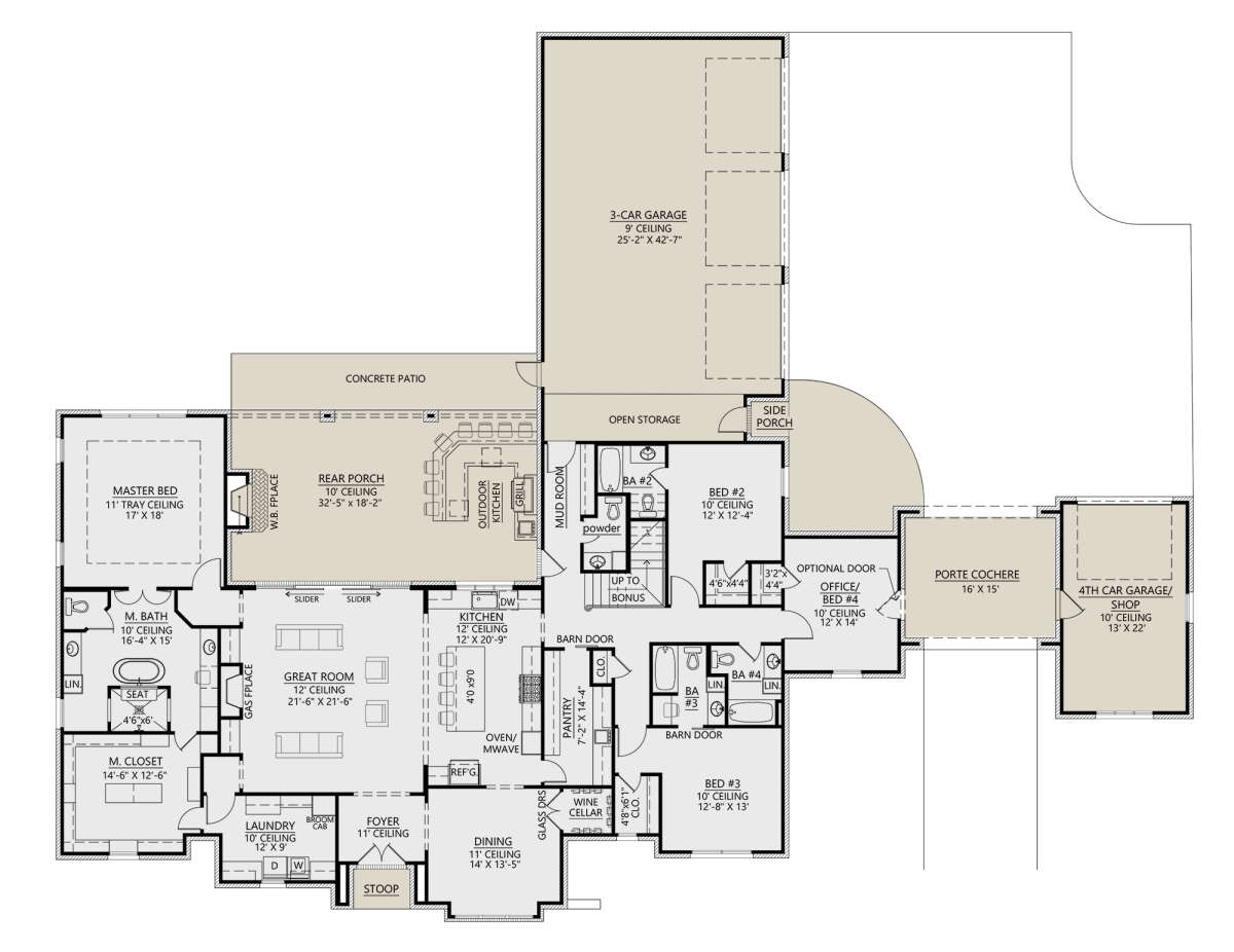Проект одноэтажного дома с гаражом на три и более машин в английском стиле S5-310 (4534-00085)