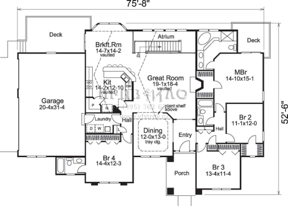 Проект одноэтажного дома с гаражом на три и более машин в стиле Ранчо S5-310 (5633-00083)