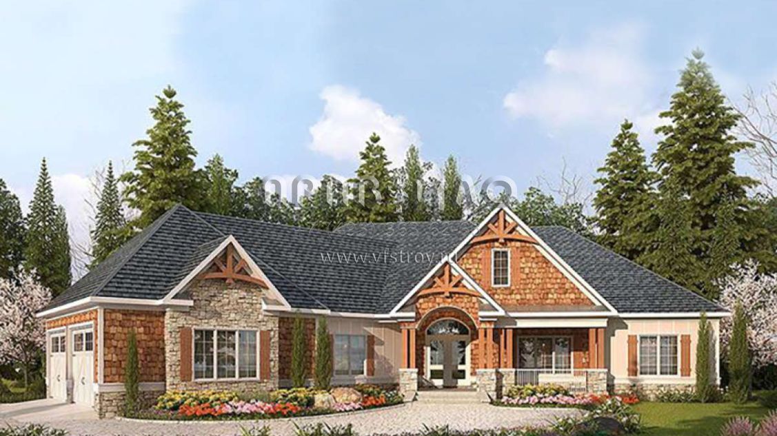 Проект одноэтажного дома с гаражом на две машины в американском стиле S5-310 (6082-00035)