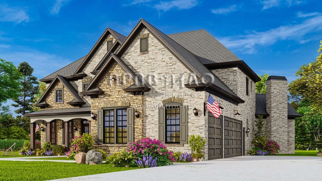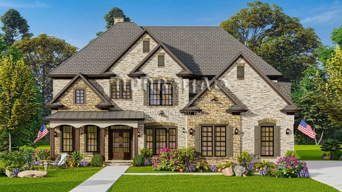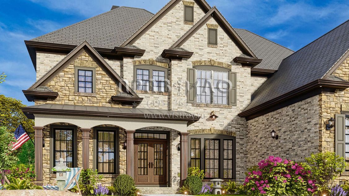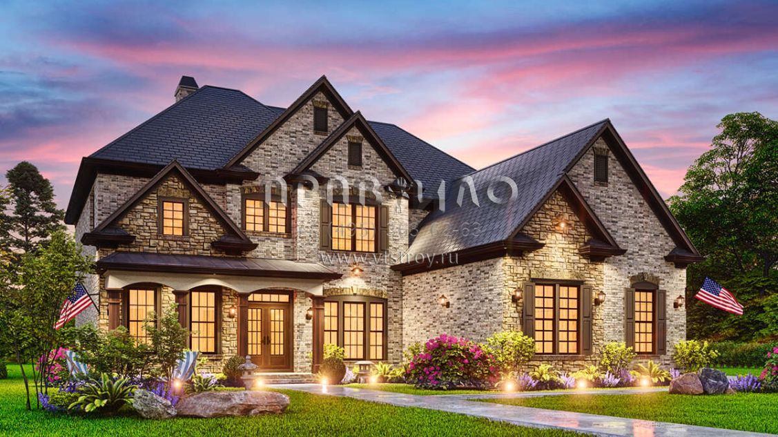 Проект двухэтажного дома с гаражом на три и более машин в английском стиле S5-310 (699-00066)