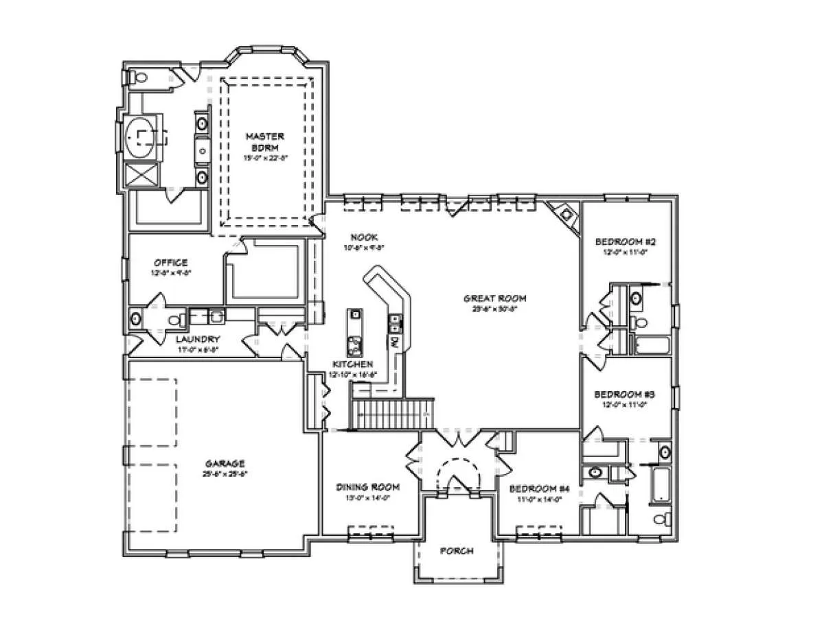 Проект одноэтажного дома с гаражом на две машины в стиле Ранчо S5-310 (849-00056)