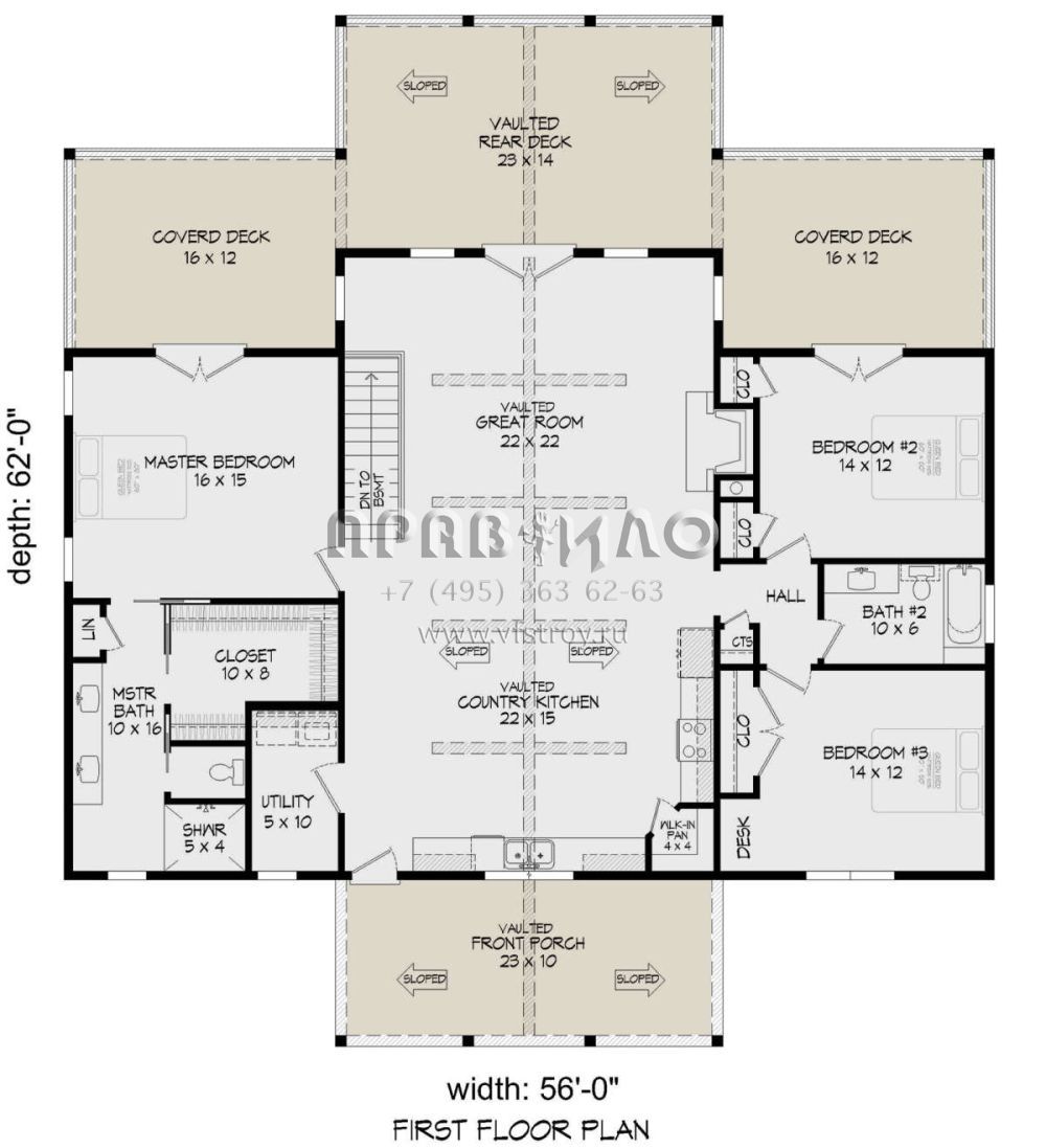 S5-310 (940-00890) Это иностранный проект, для которого требуется адаптация под нормы, действующие в Российской Федерации. Вы видите проект дома в стиле Шале. В этом доме сочетаются черты сельской постройки и аскетичность лофта. Внутри жильцы смогут проводить время с максимальным комфортом. Обратим внимание, что сейчас на планировках все размеры представлены в футах. Для перевода в метры вам необходимо значение в футах умножить на 0,3048.