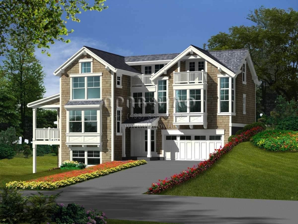Проект трехэтажного дома с гаражом на две машины в прибрежном стиле S5-311 (341-00192)