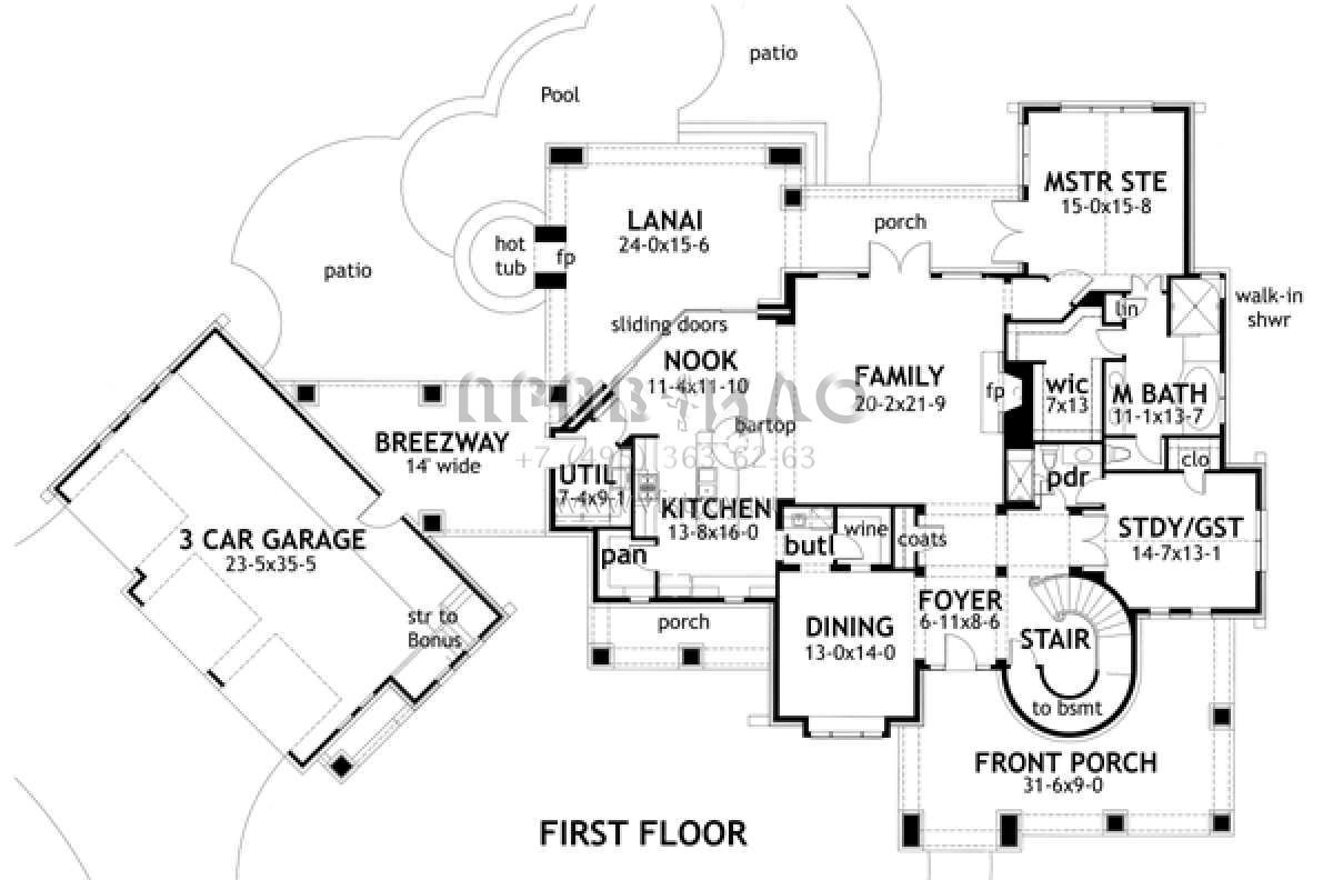 Проект двухэтажного дома с гаражом на три и более машин в стиле Ранчо S5-311 (9401-00006)