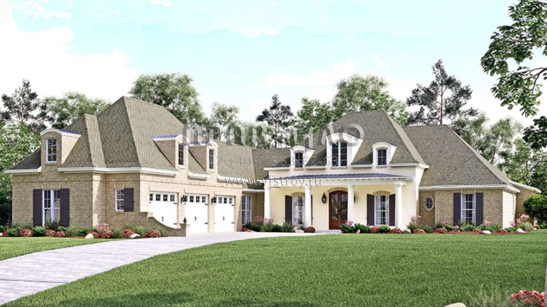 Проект двухэтажного дома с гаражом на три и более машин в английском стиле S5-312 (041-00129)
