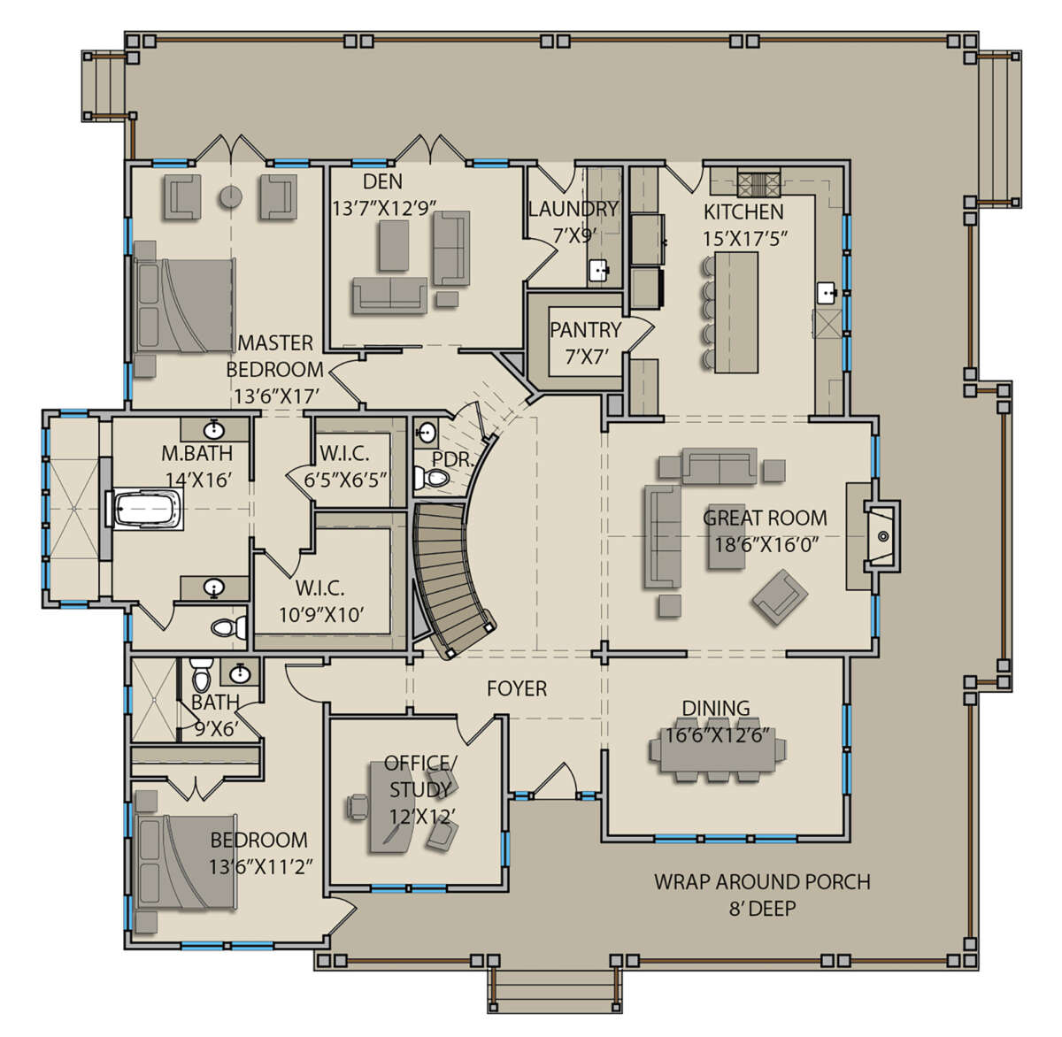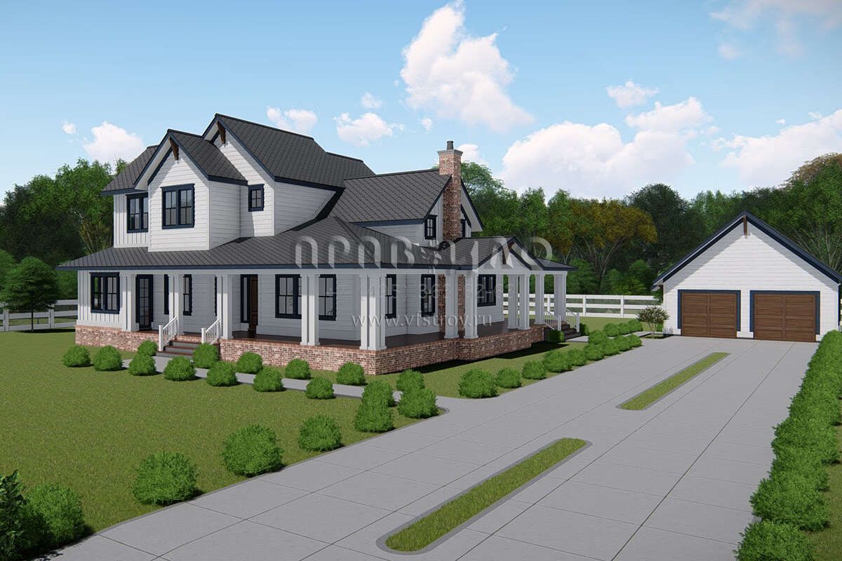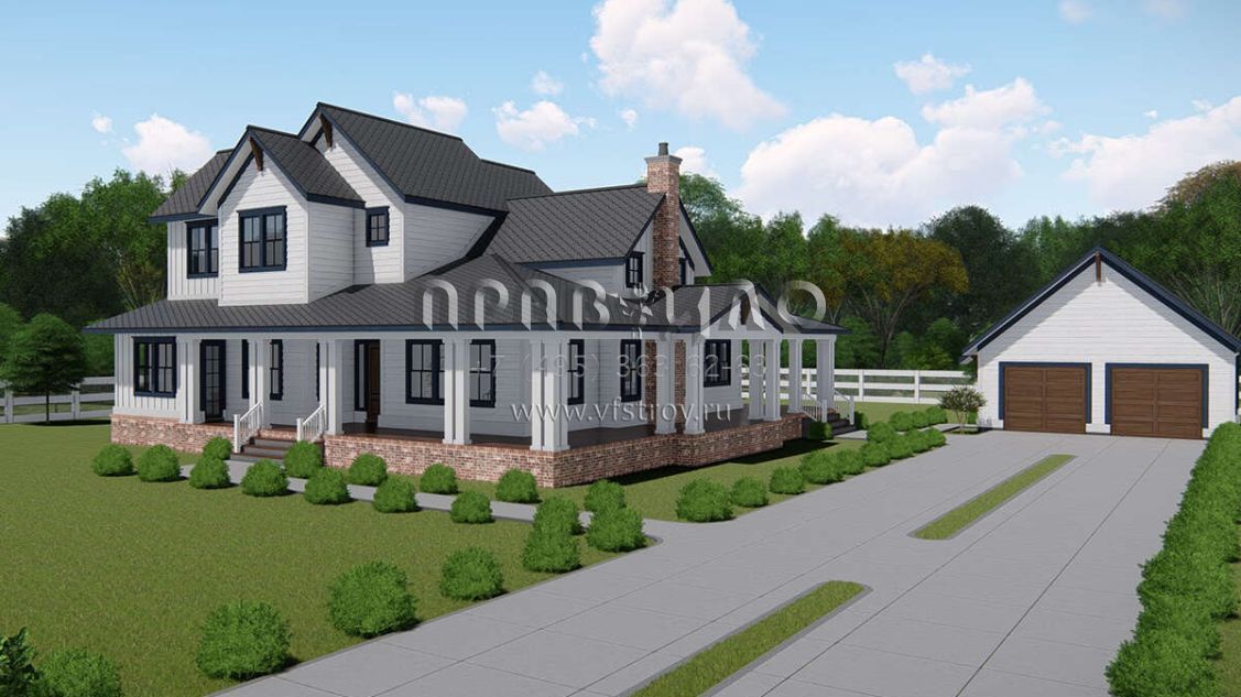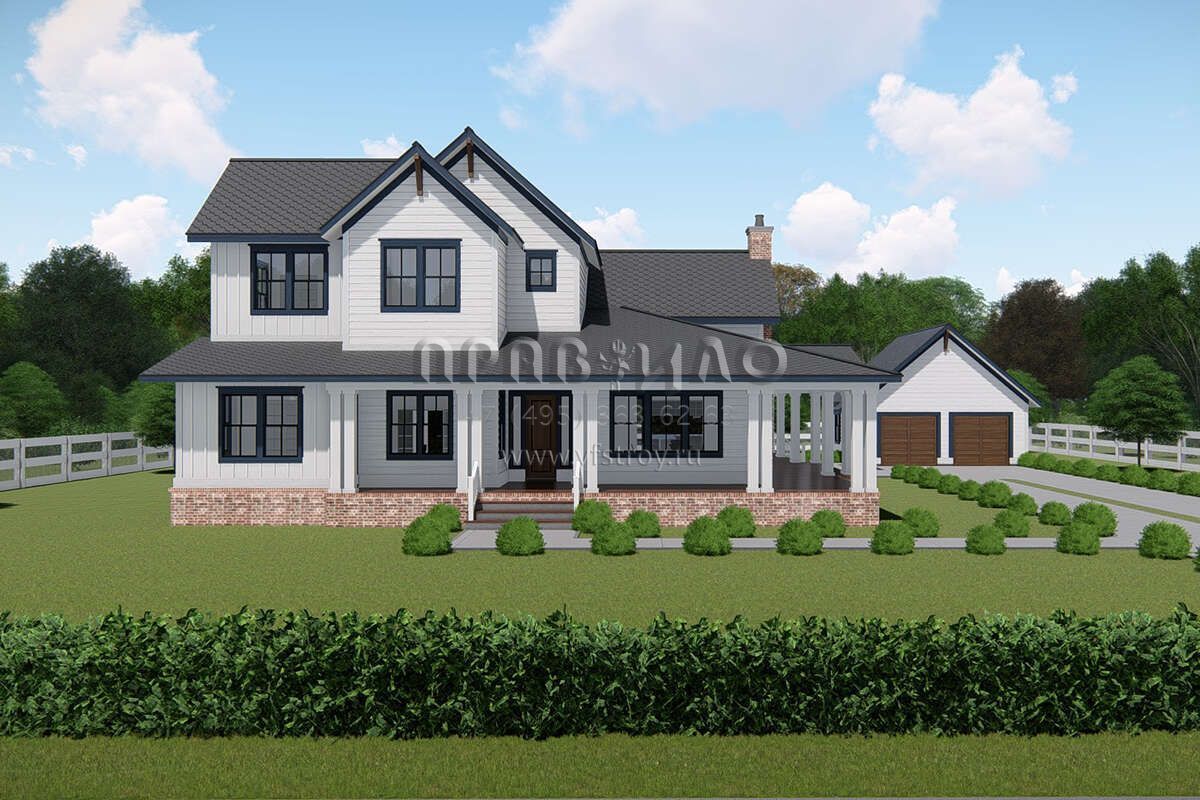 Проект двухэтажного дома с гаражом на две машины в стиле Ранчо S5-312 (3571-00002)