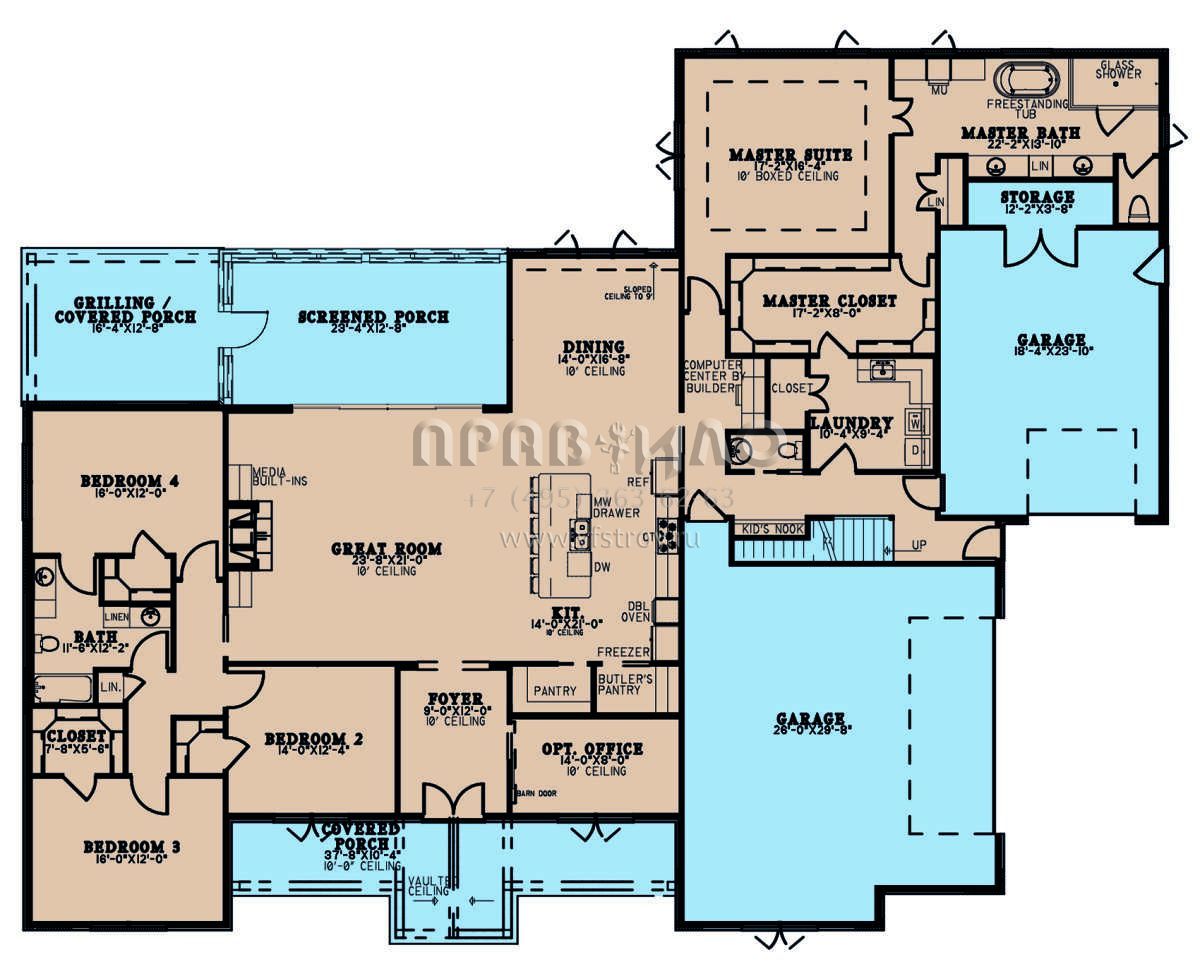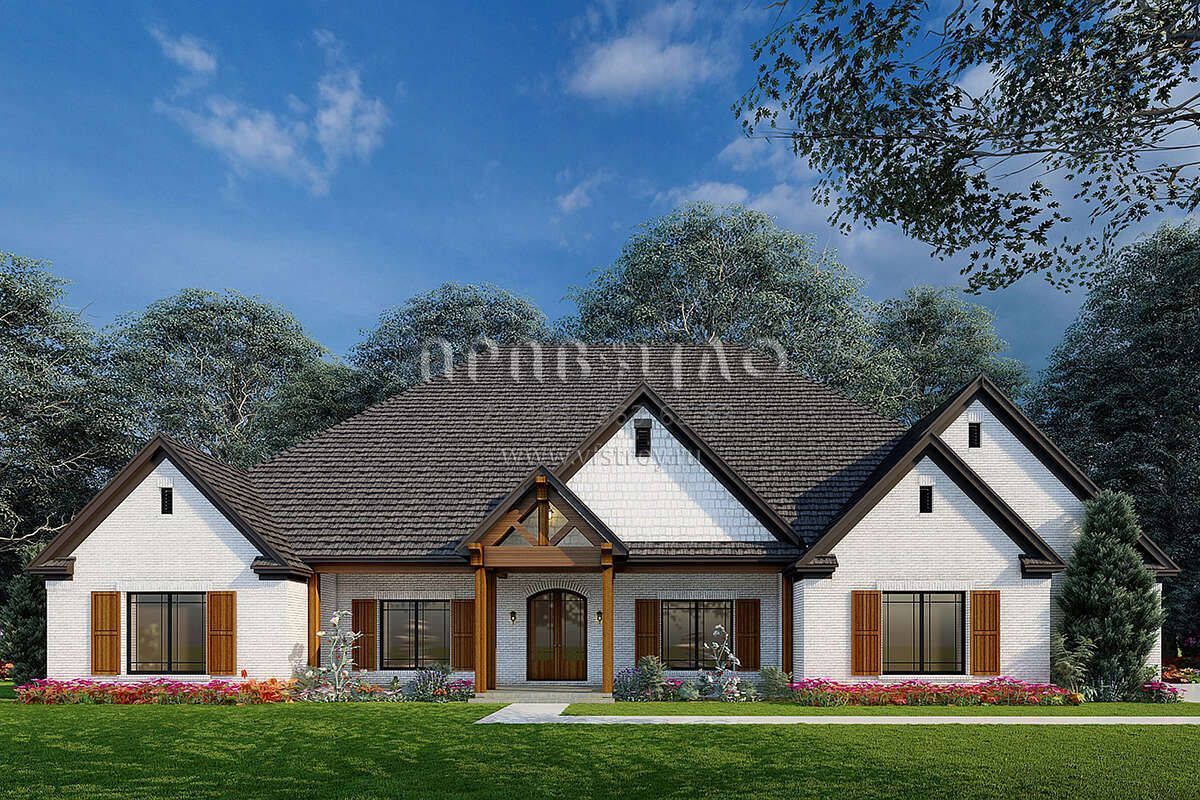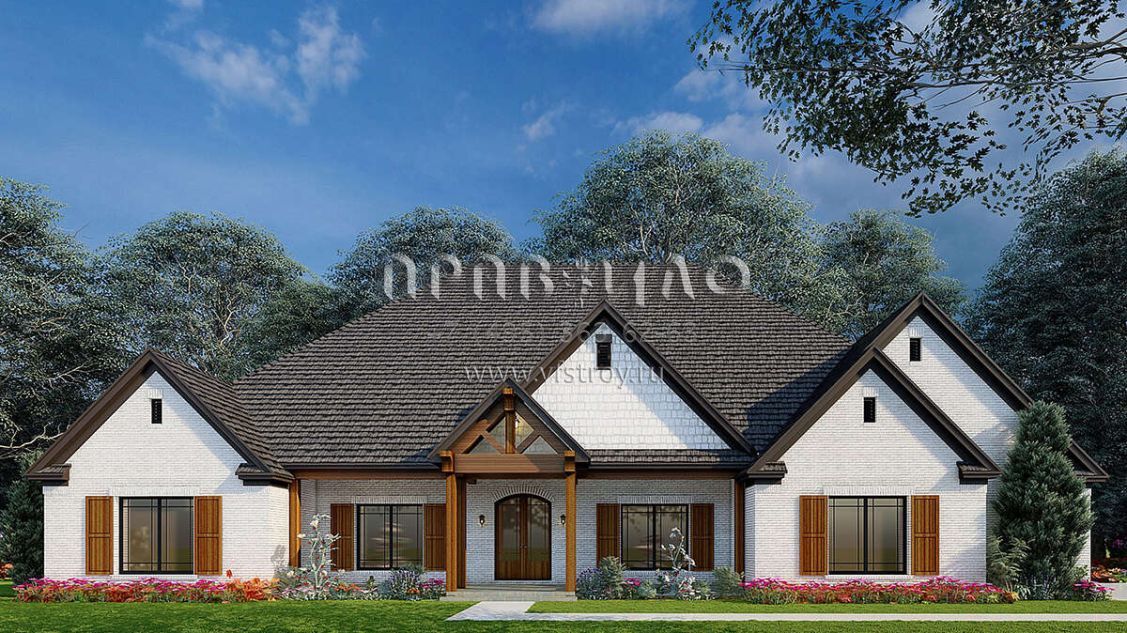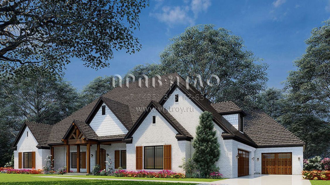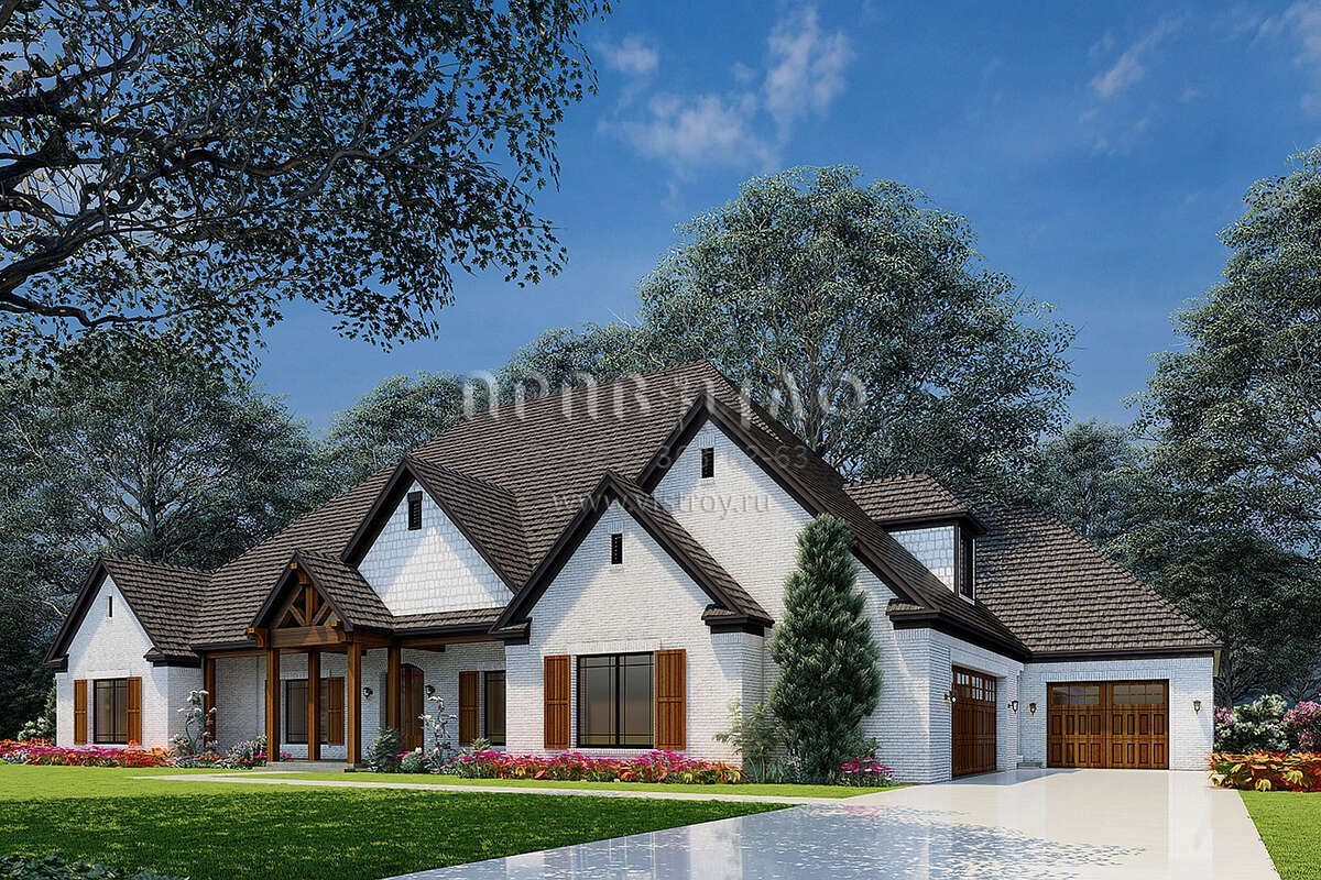 Проект одноэтажного дома с гаражом на три и более машин в американском стиле S5-312 (8318-00223)