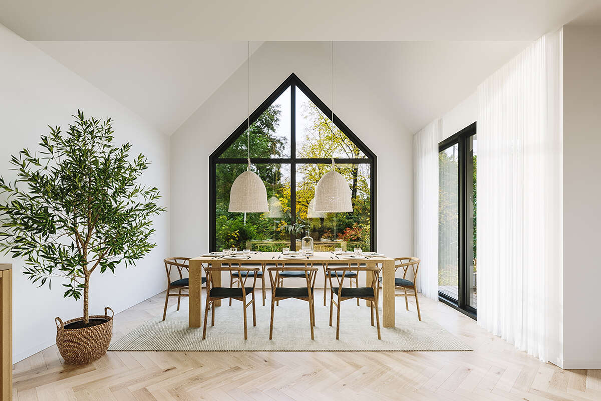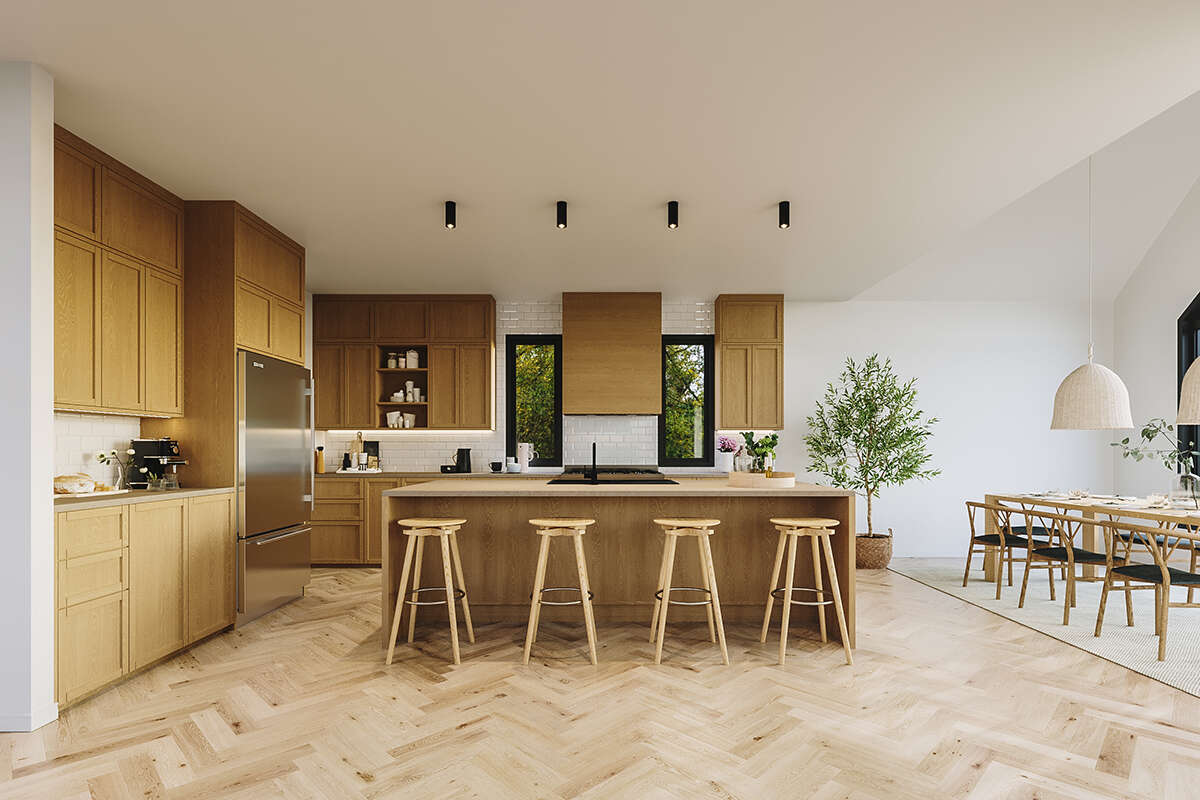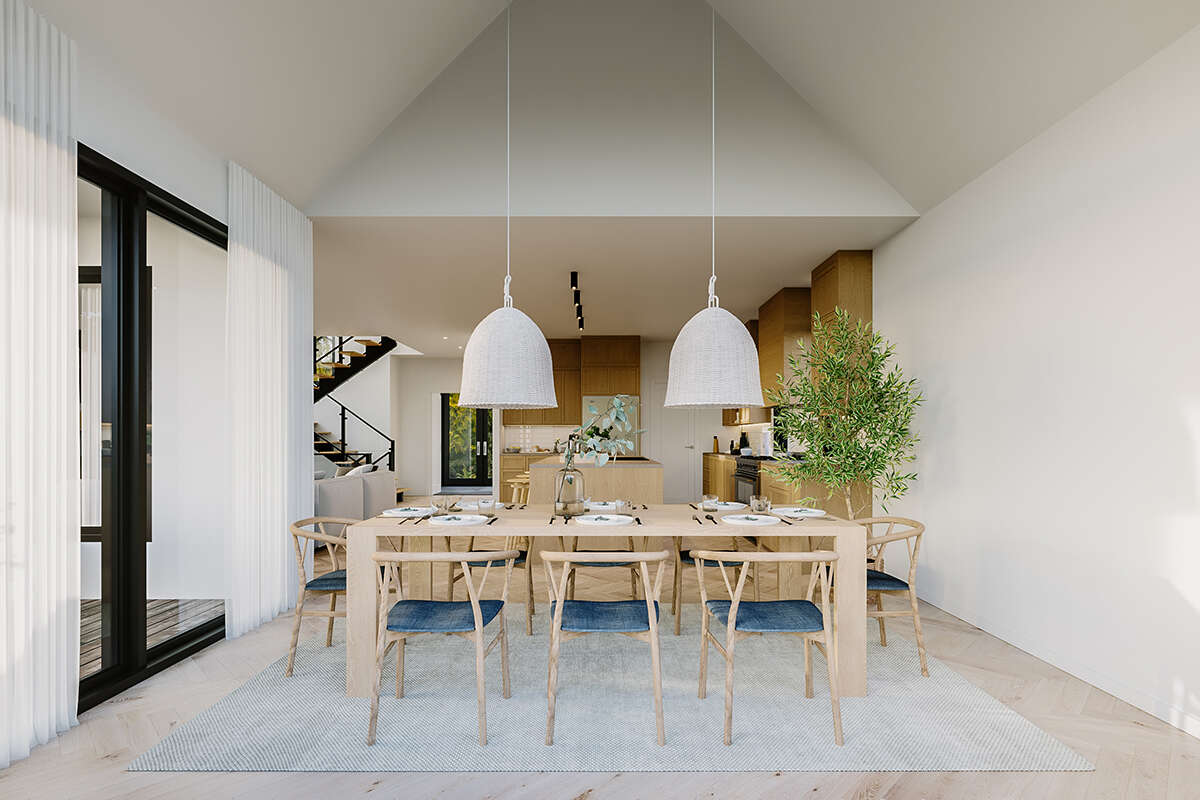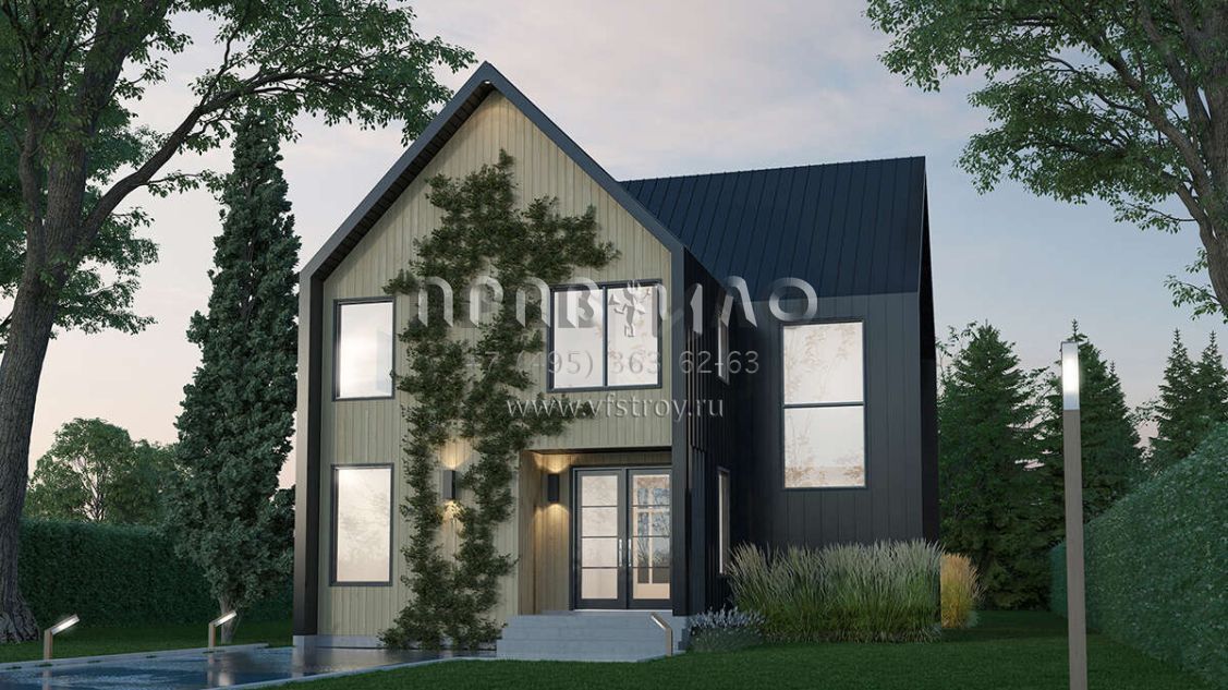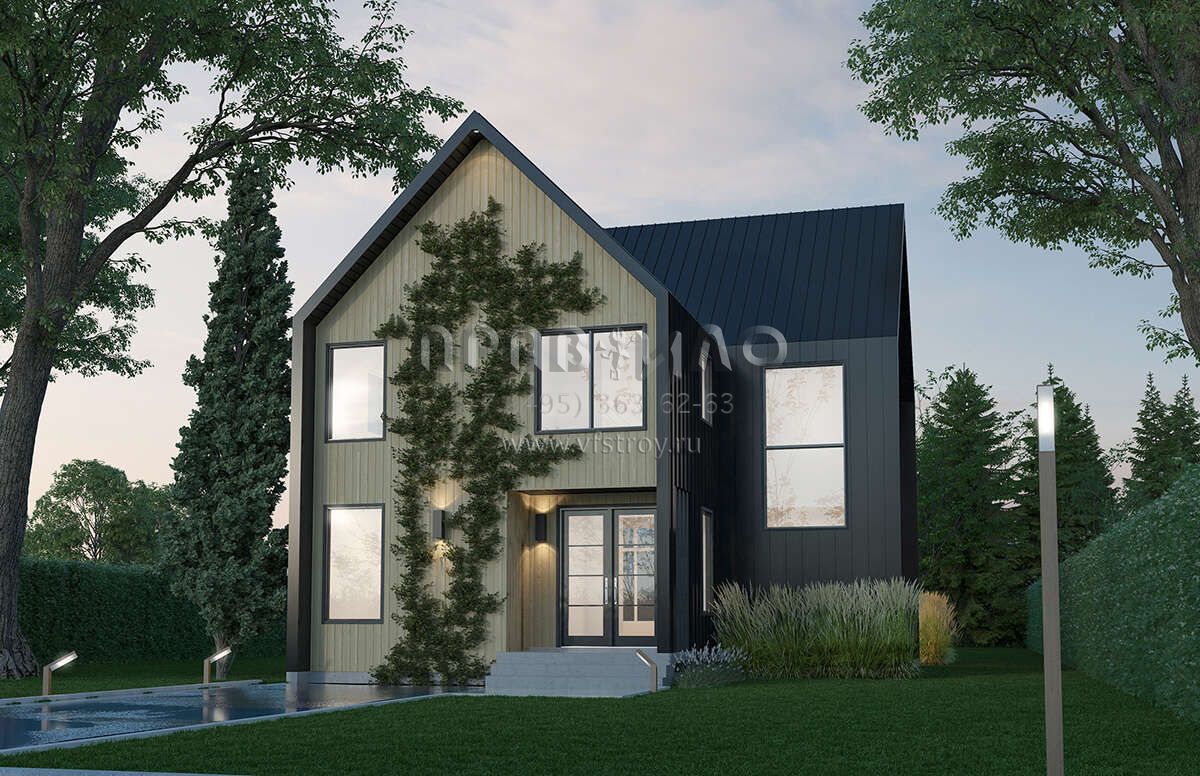 Двухэтажный проект дома позволяет рационально распорядиться площадью участка небольшого размера или узкой формы. На первом этаже находятся общие комнаты (гостиная/столовая, кухня, подсобные и технические помещения), на втором — спальни членов семьи.