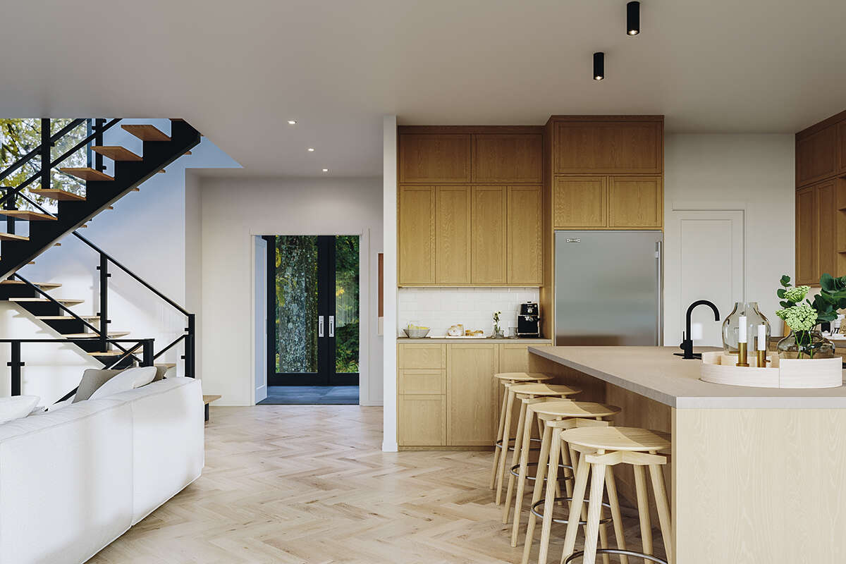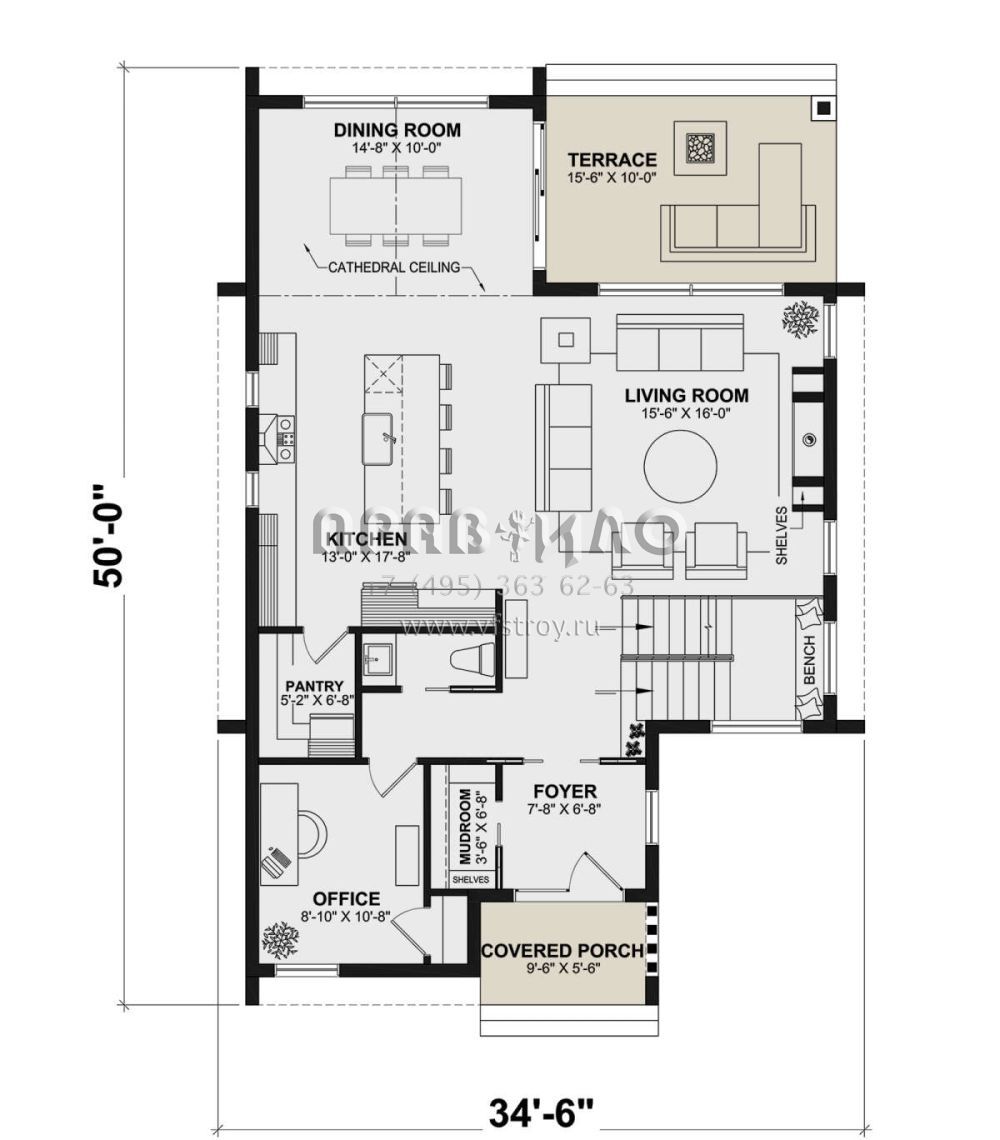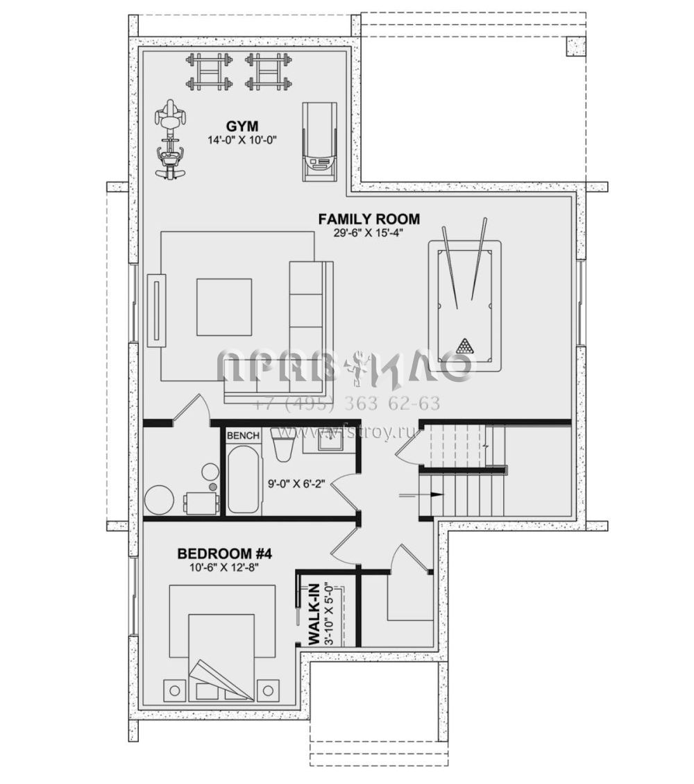 S5-313 (034-01326) Это иностранный проект, для которого требуется адаптация под нормы, действующие в Российской Федерации. Вы видите проект дома в современном стиле. В этом доме сочетаются черты сельской постройки и аскетичность лофта. Внутри жильцы смогут проводить время с максимальным комфортом. Обратим внимание, что сейчас на планировках все размеры представлены в футах. Для перевода в метры вам необходимо значение в футах умножить на 0,3048.