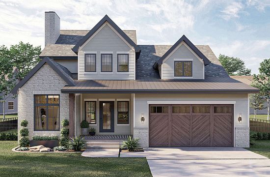 Проект двухэтажного дома с гаражом на две машины в стиле Ранчо S5-313 (940-00236)