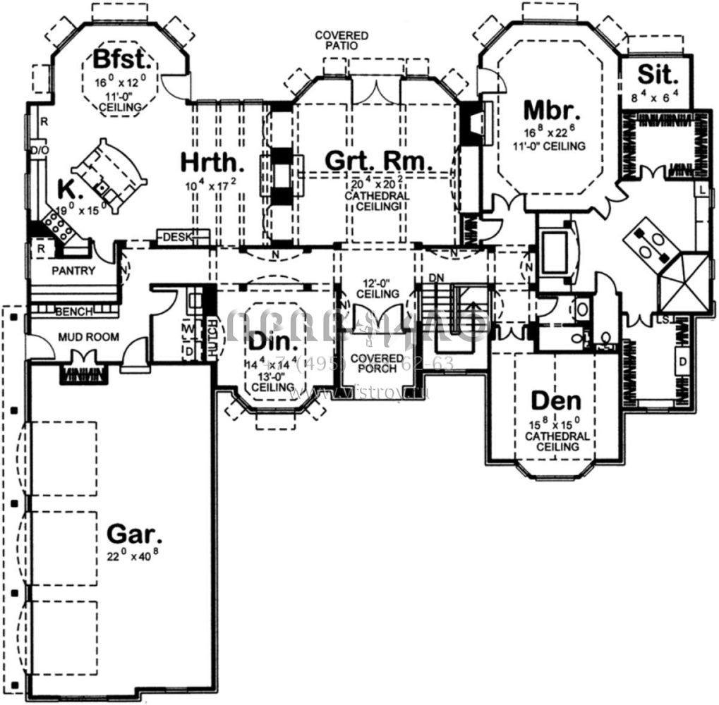 Проект одноэтажного дома с гаражом на три и более машин в английском стиле S5-313 (963-00175)