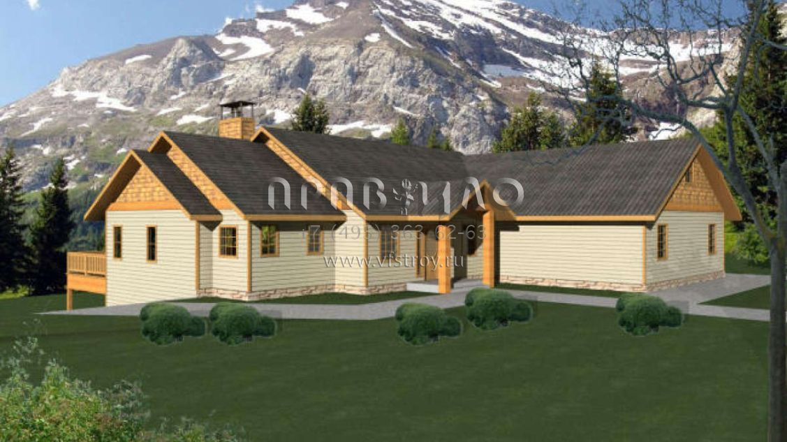 Это проект одноэтажного дома с гаражом на три и более машин жилой площадью 314 кв.м. Длина дома 17.4 м, ширина 20.4 м, высота 5.8 м. В доме три спальни и два санузла.