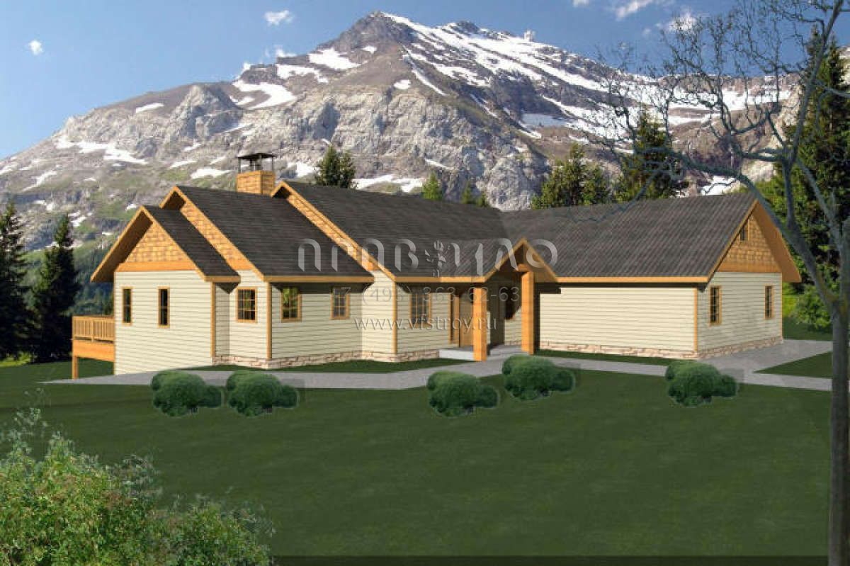Большая площадь участка позволяет выбрать одноэтажный проект дома, особенно если в семье есть пожилые люди, инвалиды или маленькие дети.