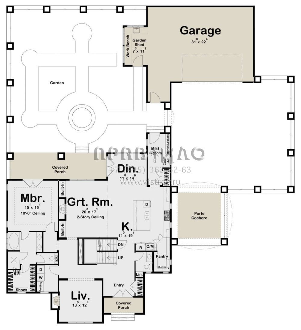 S5-314 (963-00603) Это иностранный проект, для которого требуется адаптация под нормы, действующие в Российской Федерации. Вы видите проект дома в стиле Ранчо. В этом доме сочетаются черты сельской постройки и аскетичность лофта. Внутри жильцы смогут проводить время с максимальным комфортом. Обратим внимание, что сейчас на планировках все размеры представлены в футах. Для перевода в метры вам необходимо значение в футах умножить на 0,3048.