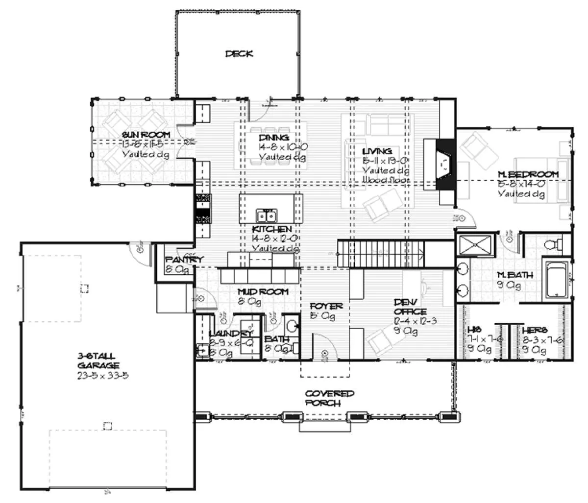 Проект двухэтажного дома с гаражом на три и более машин в американском стиле S5-315 (1637-00017)