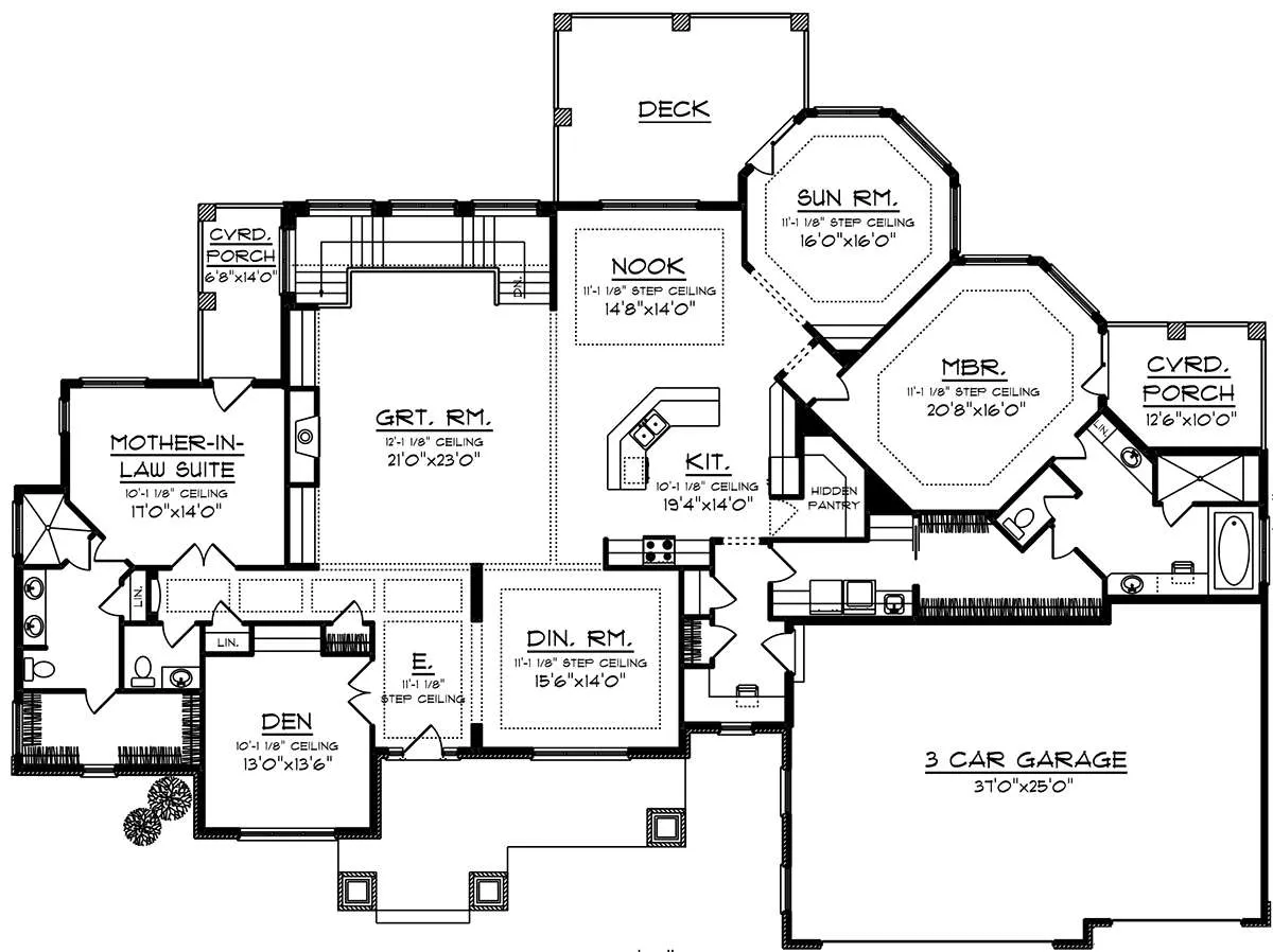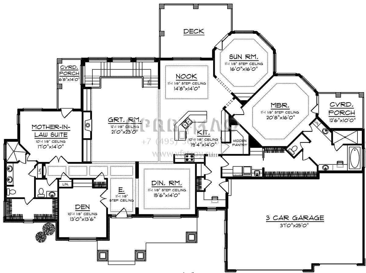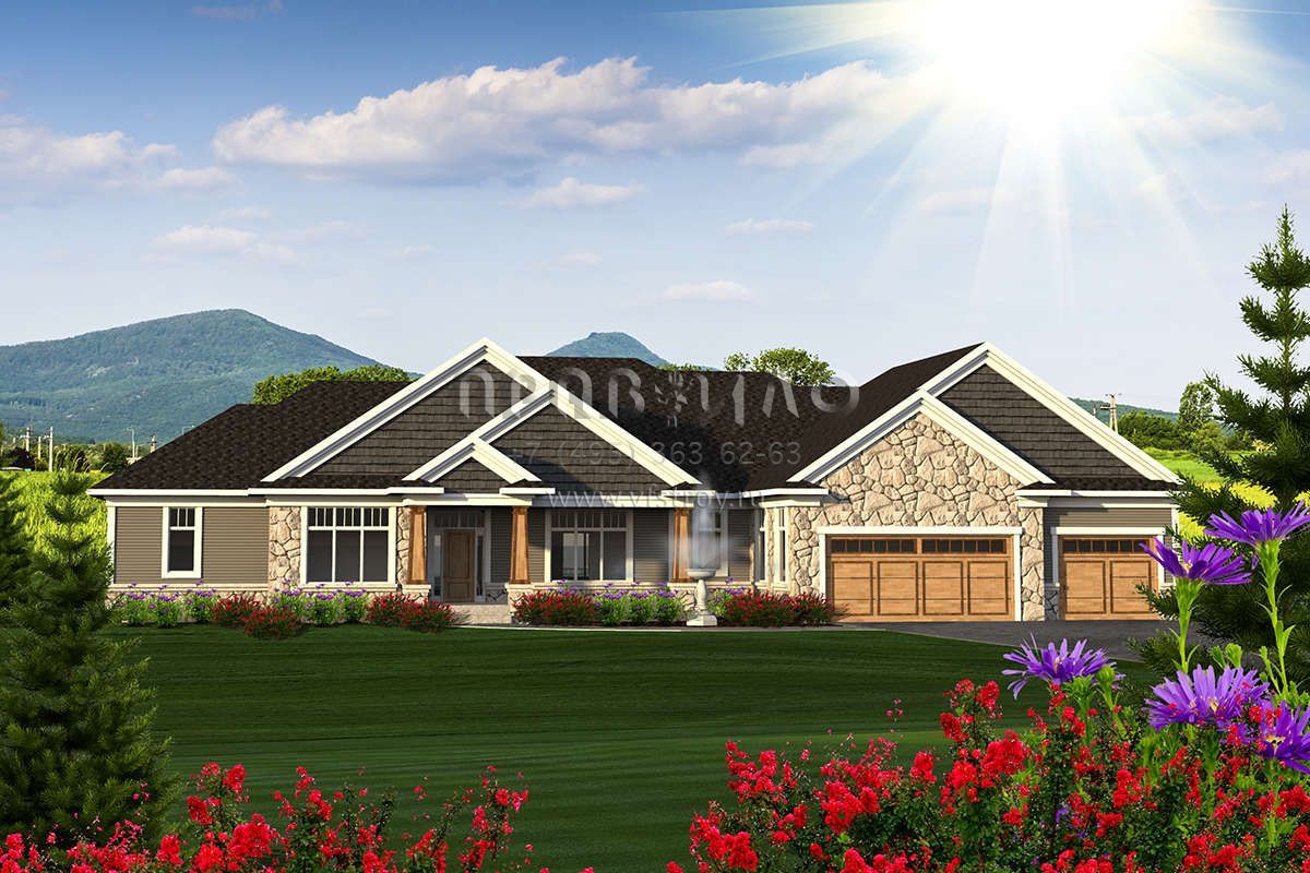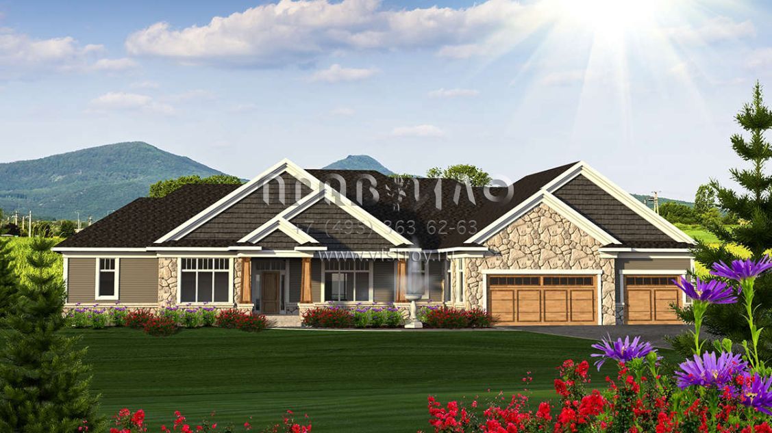 Проект одноэтажного дома с гаражом на три и более машин в стиле Ранчо S5-318 (1020-00111)