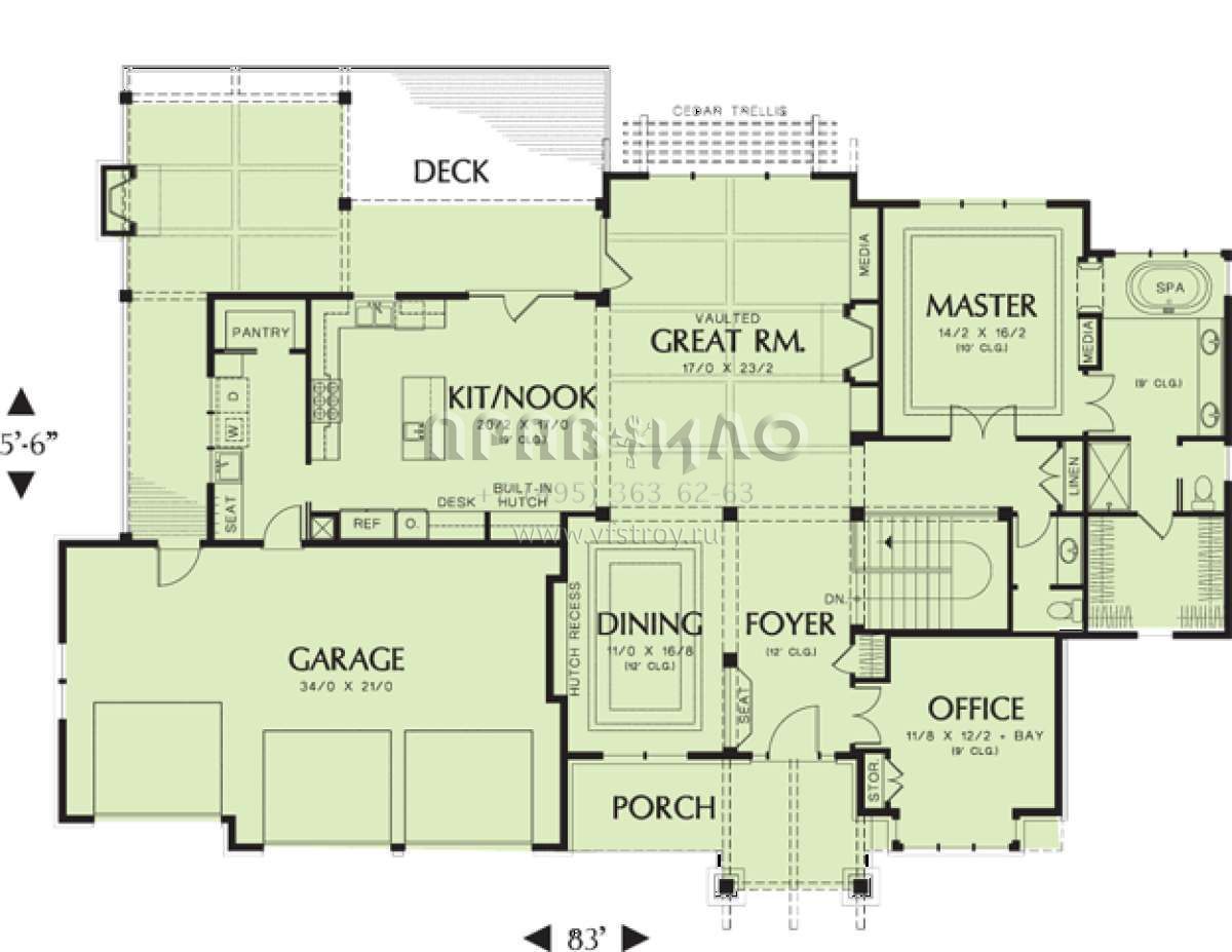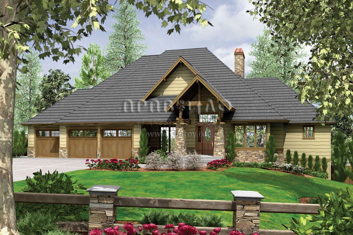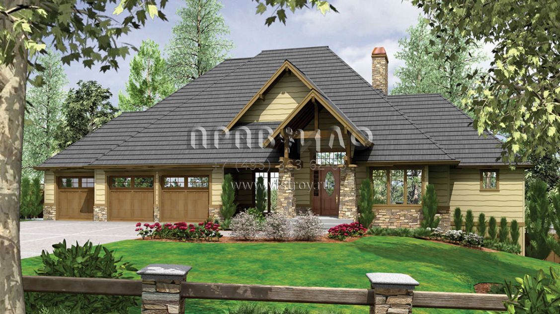 Проект одноэтажного дома с гаражом на три и более машин в американском стиле S5-318 (2559-00168)