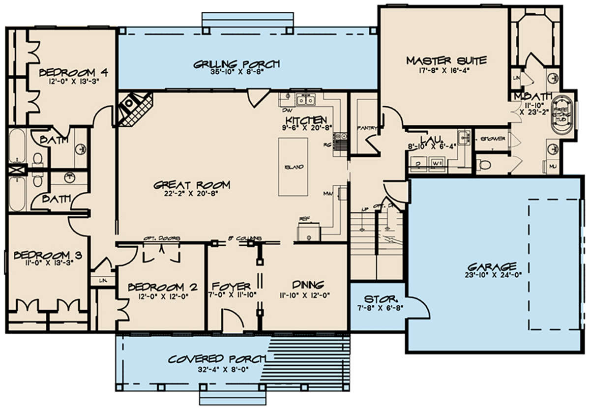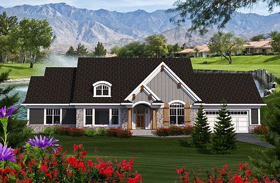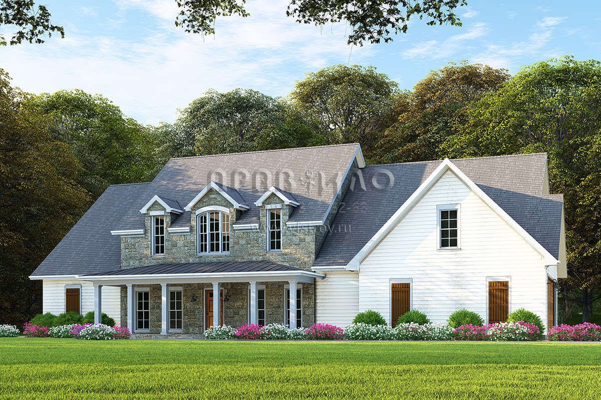 Проект двухэтажного дома с гаражом на две машины в стиле Ранчо S5-318 (8318-00104)