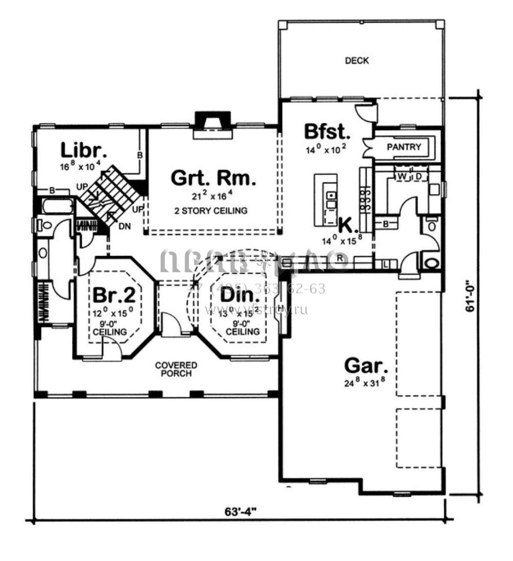 Проект двухэтажного дома с гаражом на три и более машин в стиле Ранчо S5-318 (963-00086)