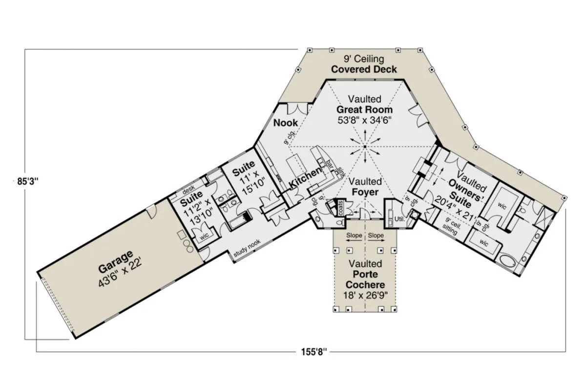 Проект одноэтажного дома с гаражом на две машины в стиле Ранчо S5-319 (035-00966)