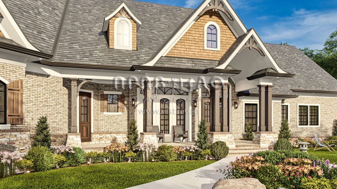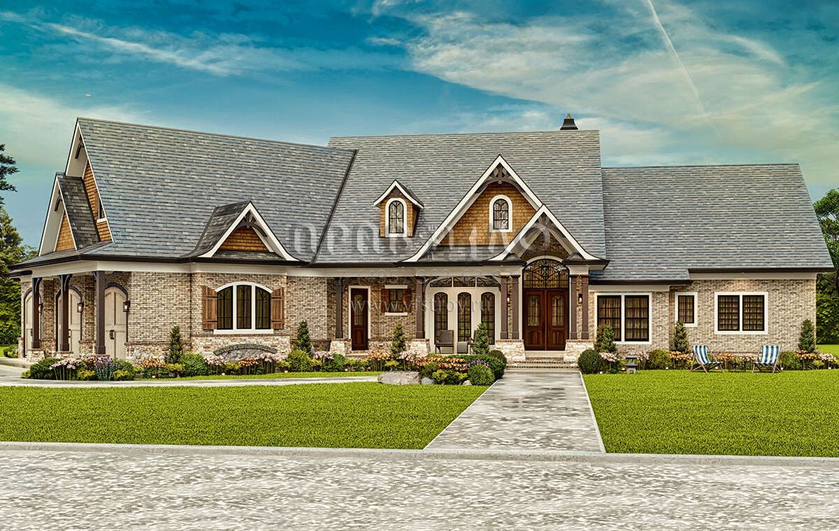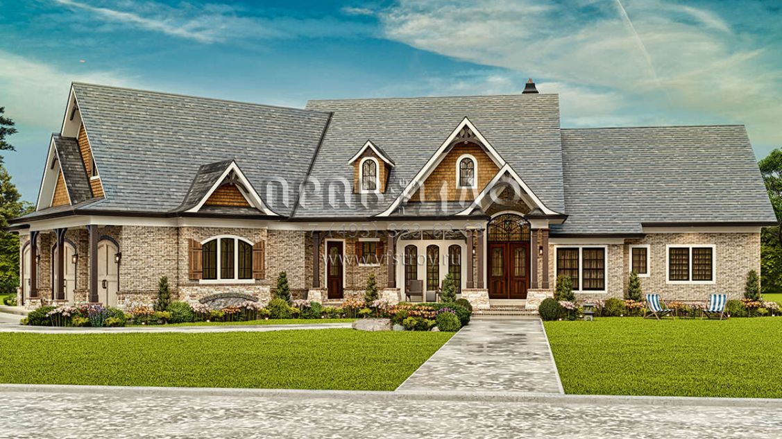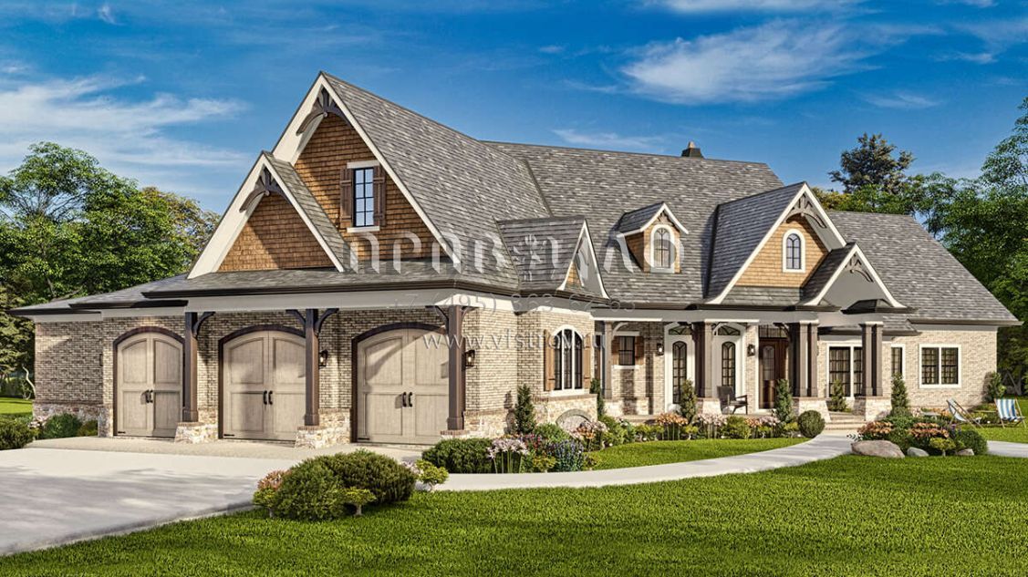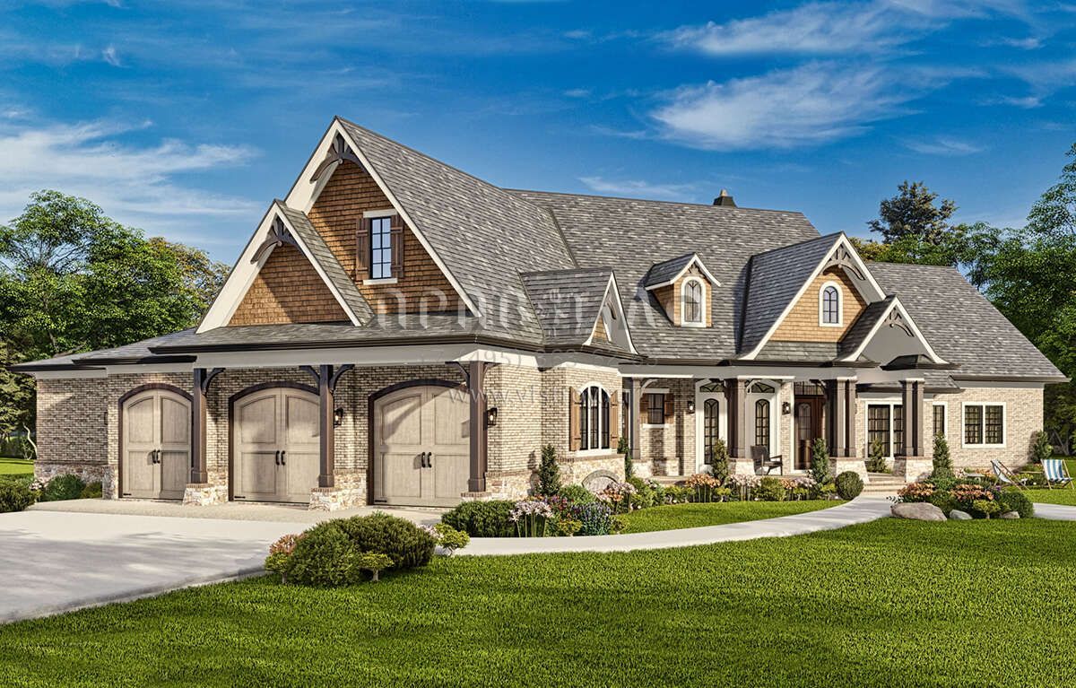 Проект одноэтажного дома с гаражом на три и более машин в американском стиле S5-319 (699-00358)