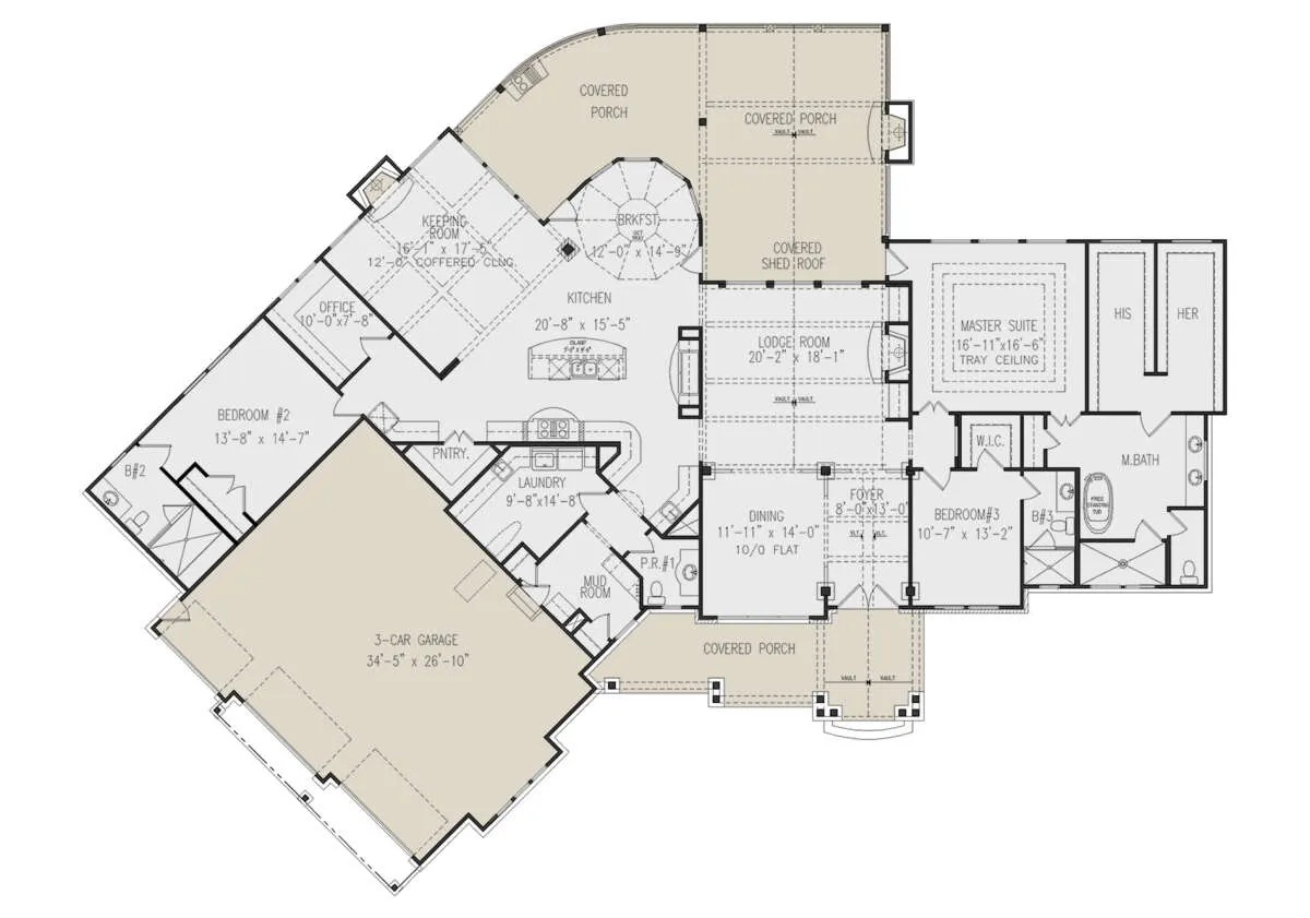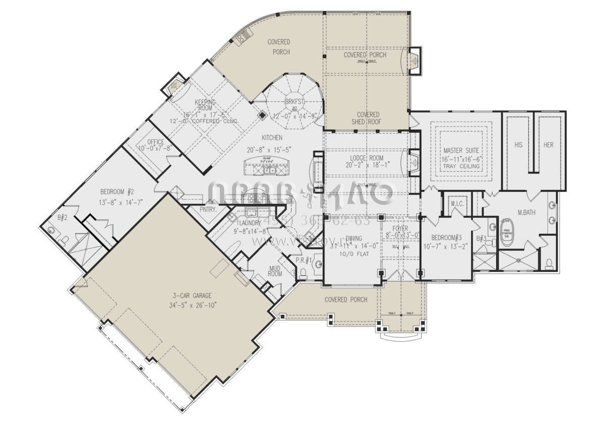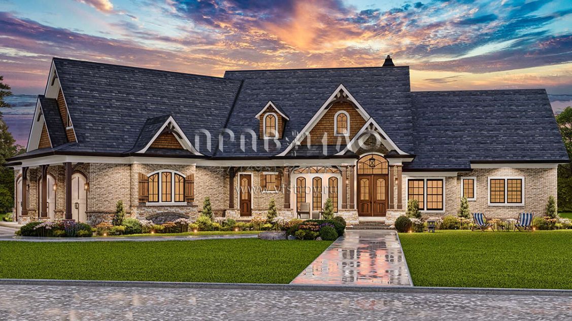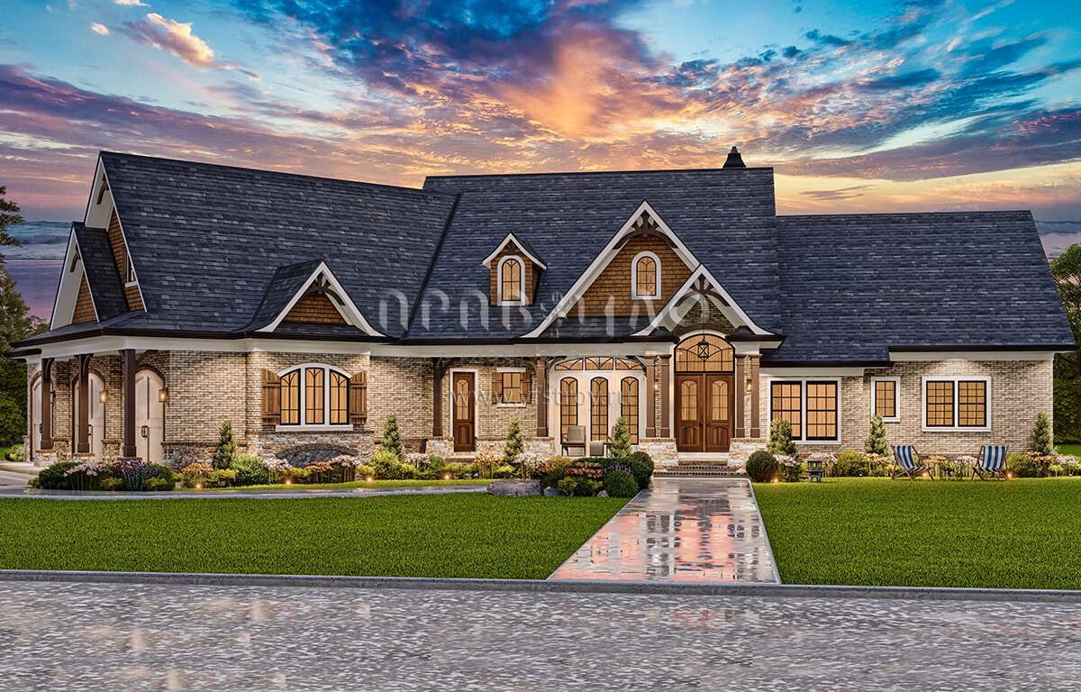Проект одноэтажного дома с гаражом на три и более машин в американском стиле S5-319 (699-00358)