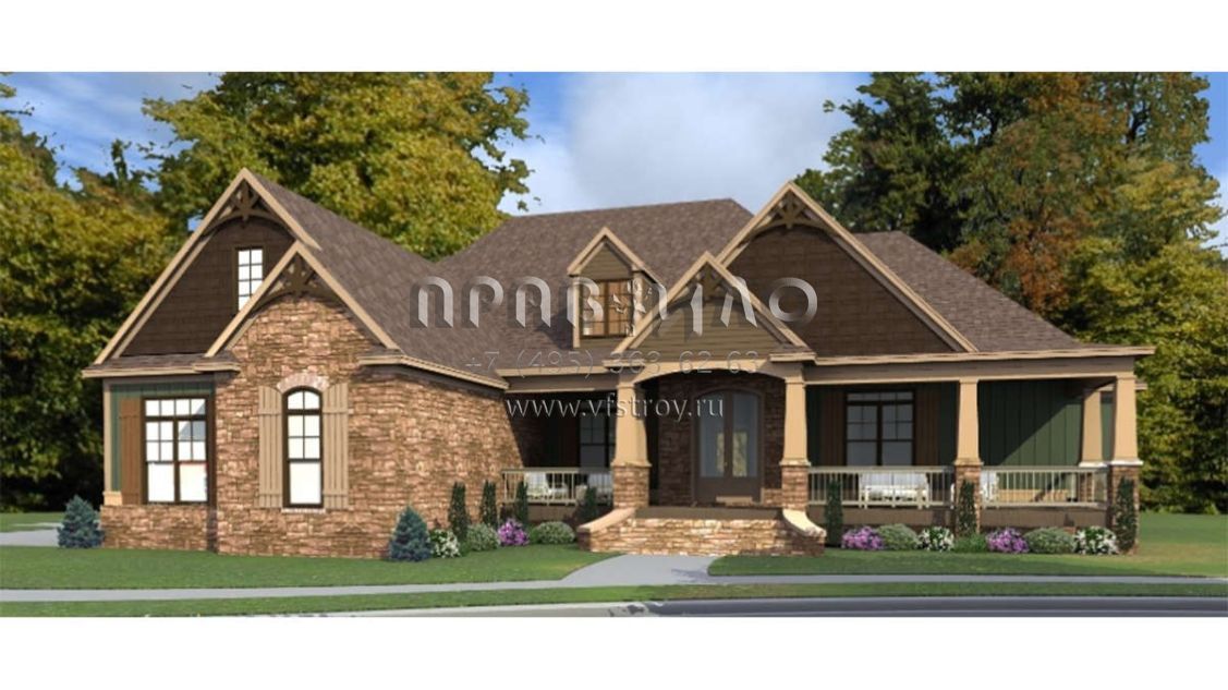 Проект одноэтажного дома с гаражом на три и более машин в американском стиле S5-320 (1070-00283)