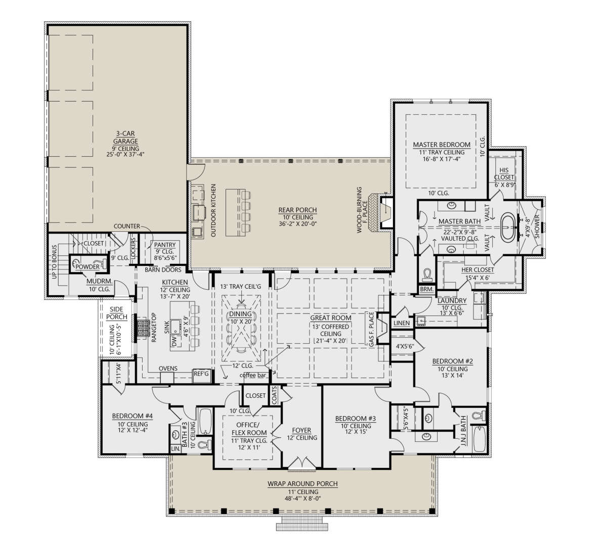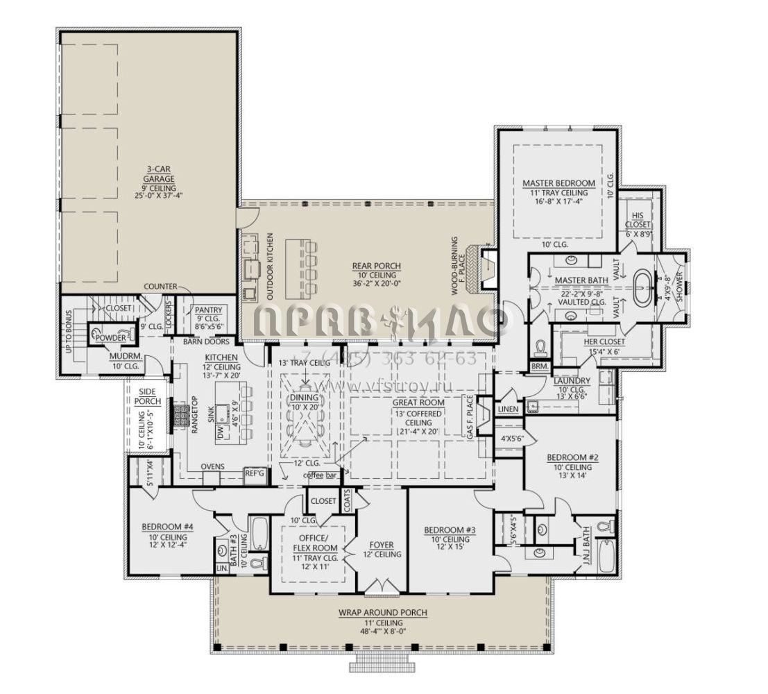 Проект одноэтажного дома с гаражом на три и более машин в современном стиле S5-320 (4534-00071)