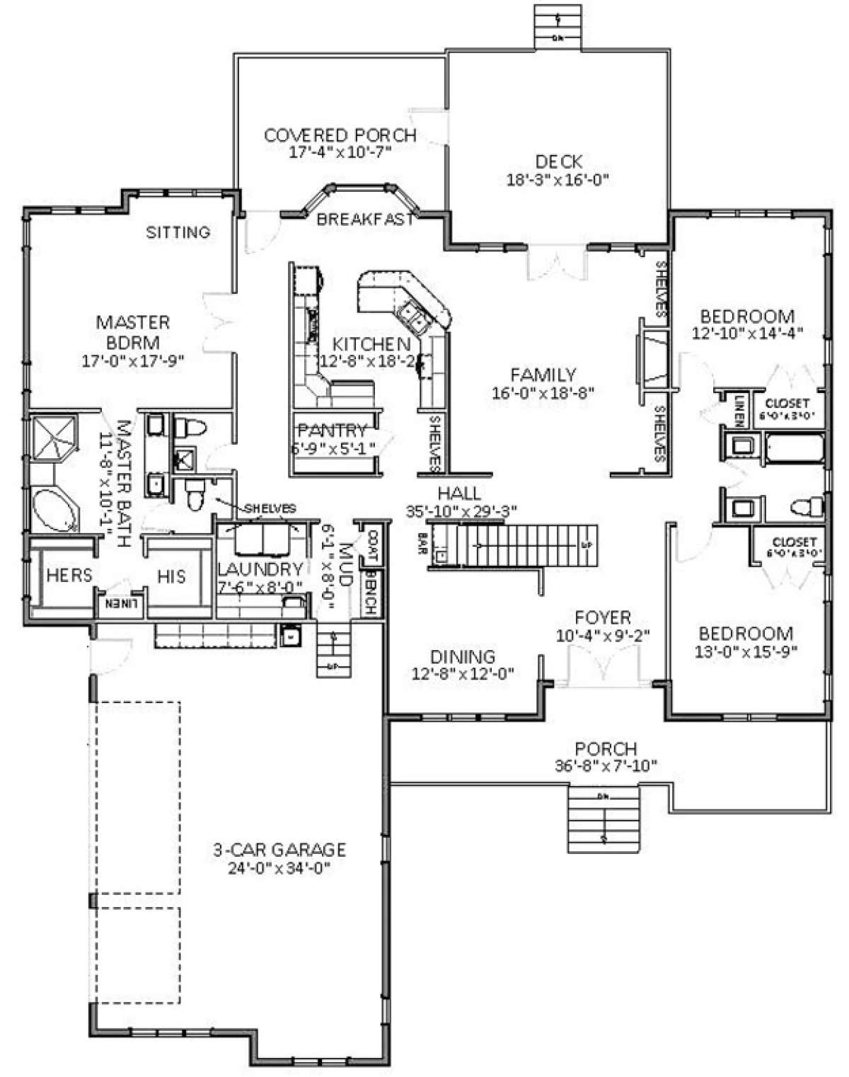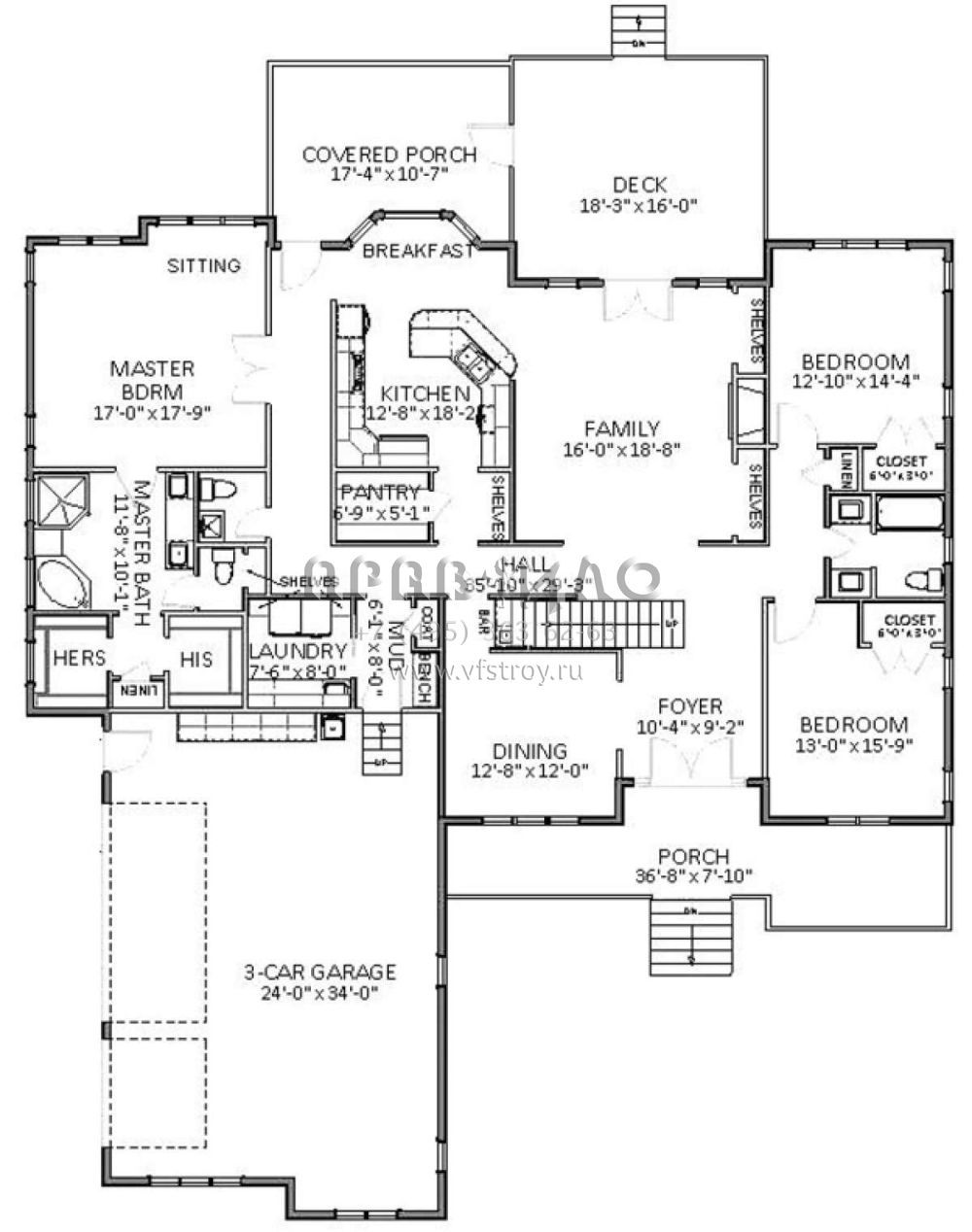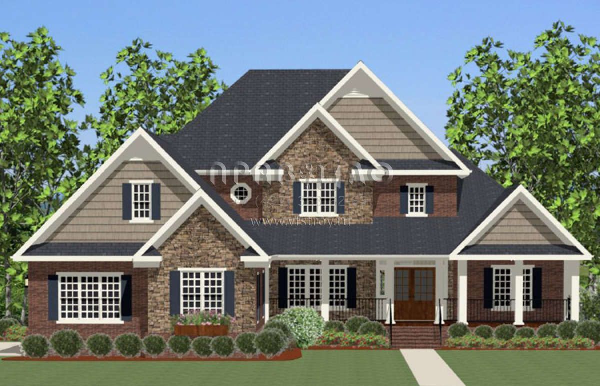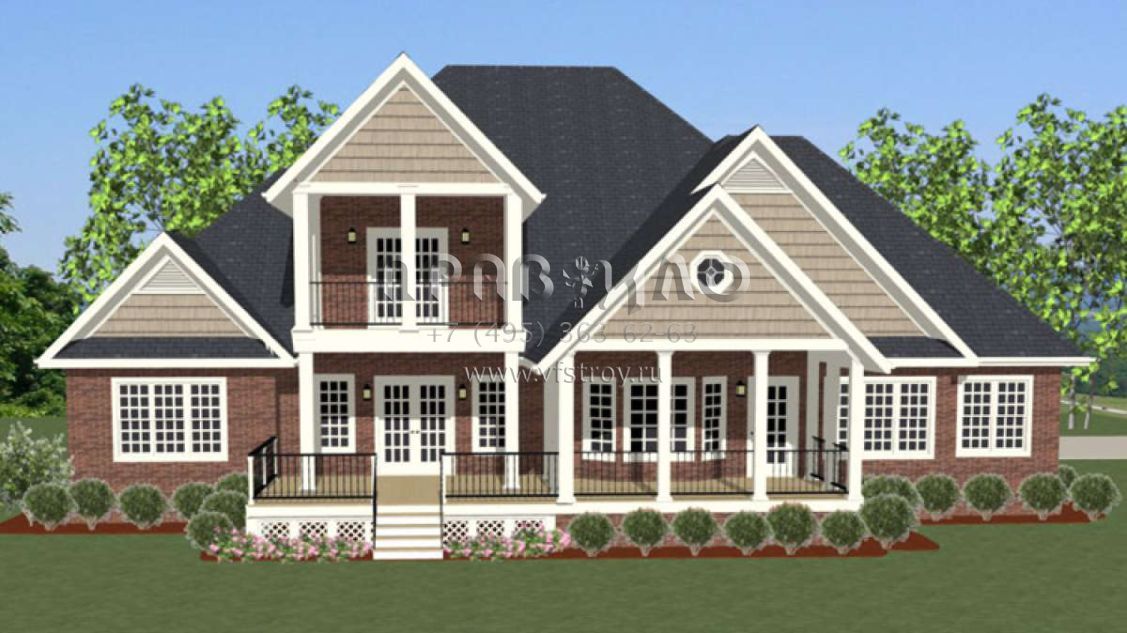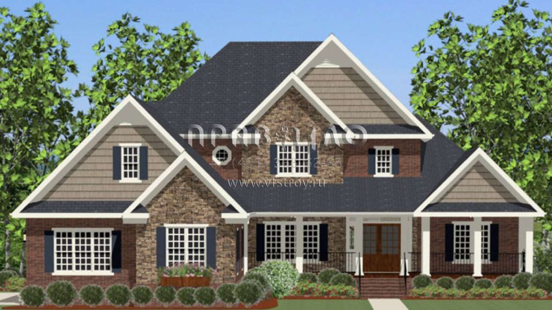 Проект двухэтажного дома с гаражом на три и более машин в стиле Ранчо S5-320 (6849-00013)
