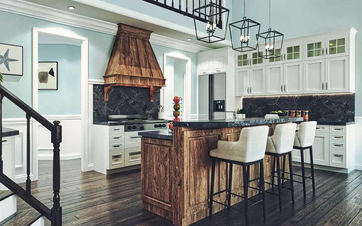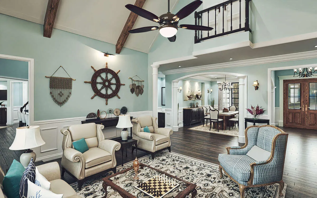 Проект двухэтажного дома с гаражом на три и более машин в прибрежном стиле S5-320 (699-00370)