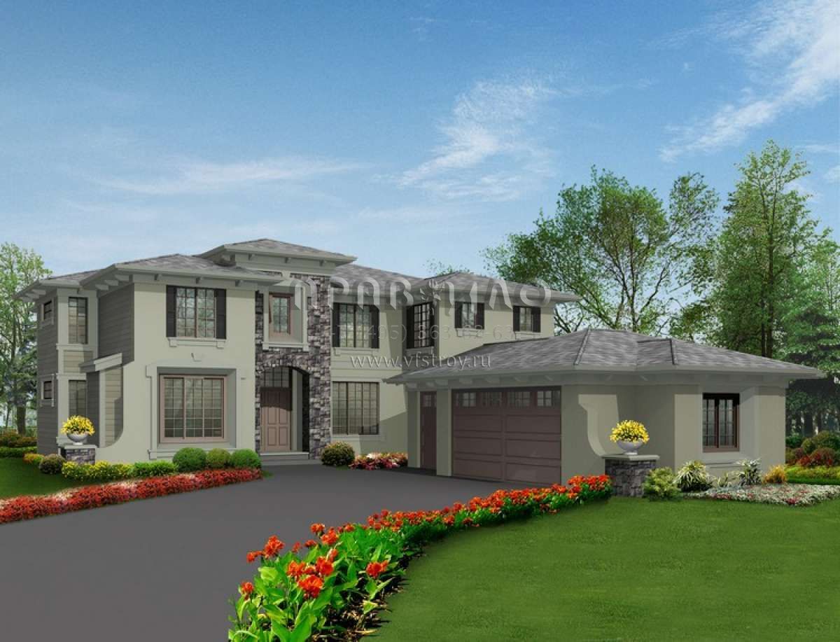 Проект двухэтажного дома с гаражом на три и более машин в прибрежном стиле S5-321 (341-00141)