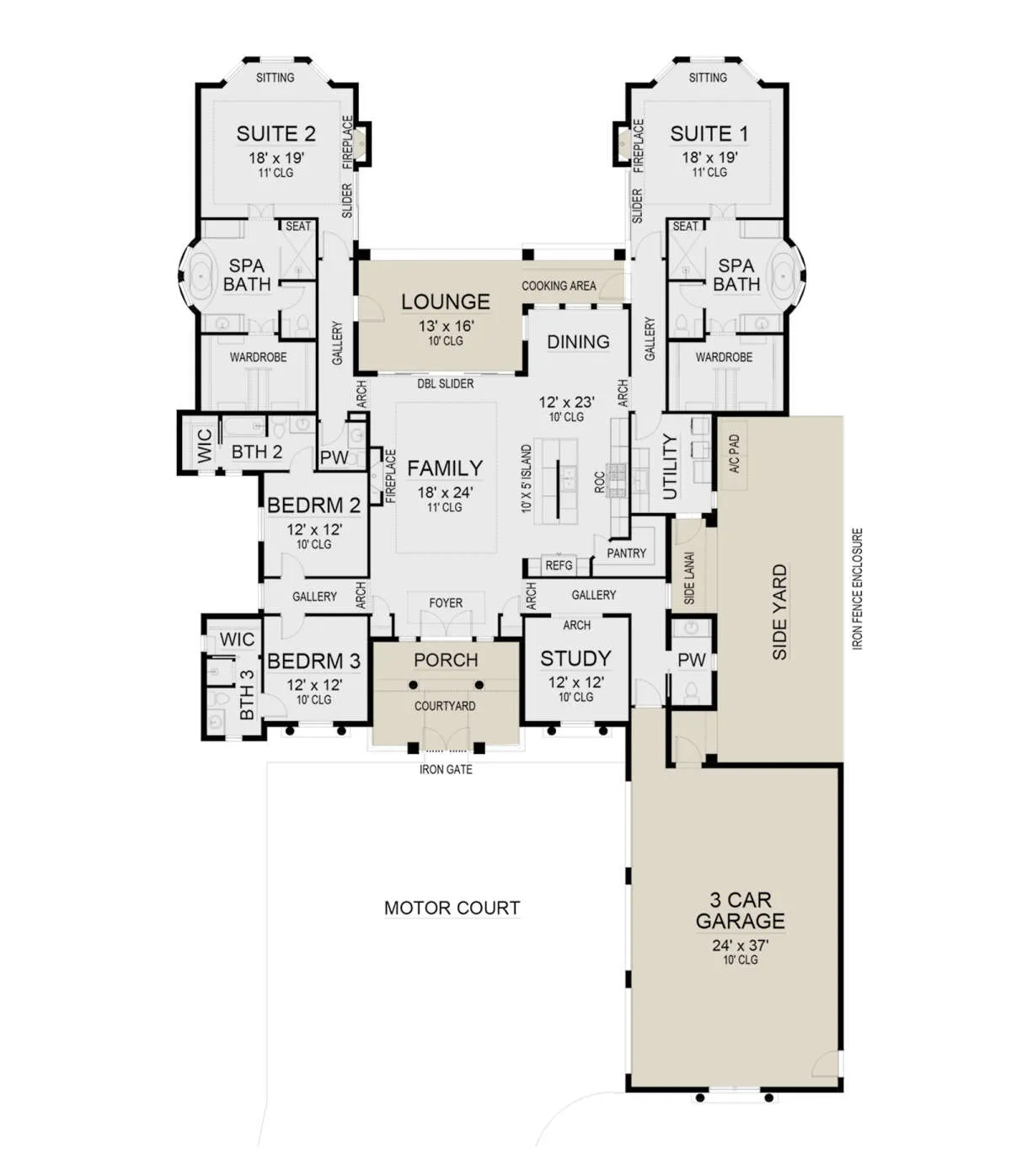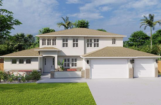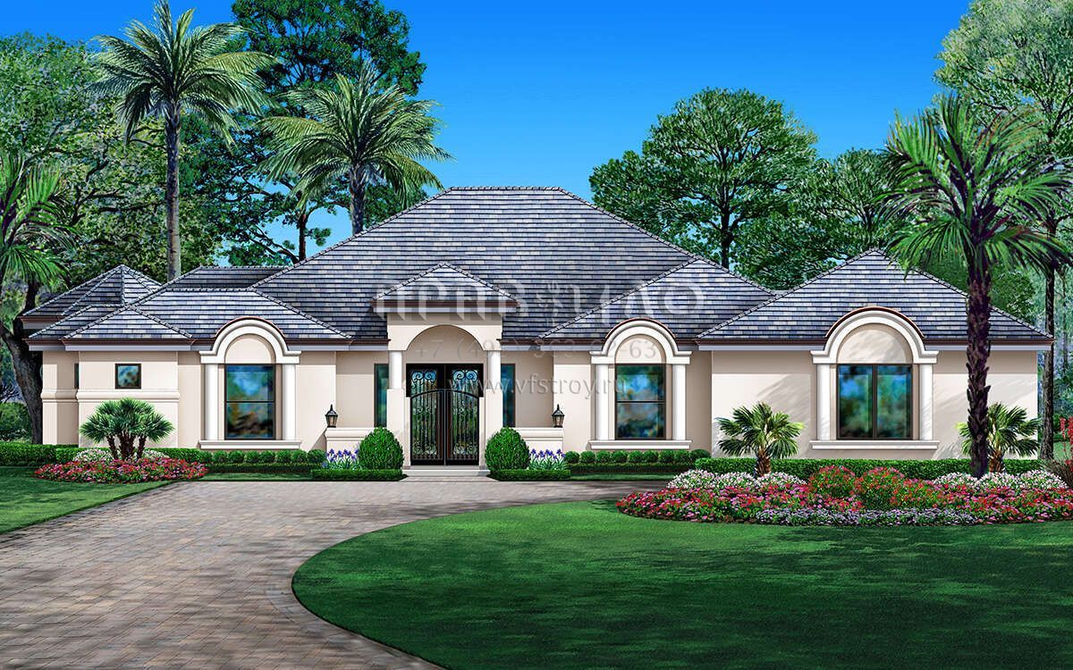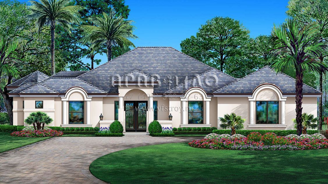 Проект одноэтажного дома с гаражом на три и более машин в прибрежном стиле S5-321 (5445-00490)