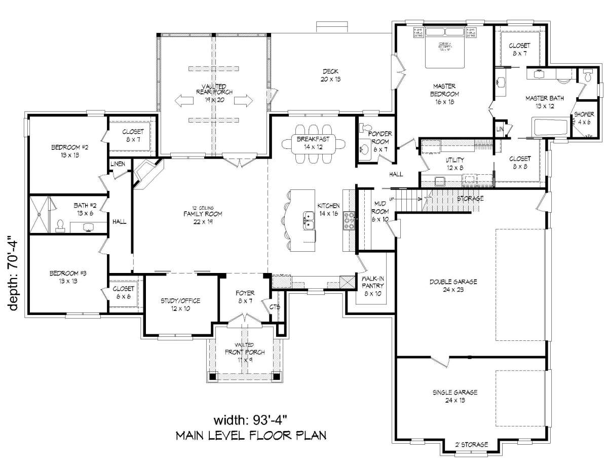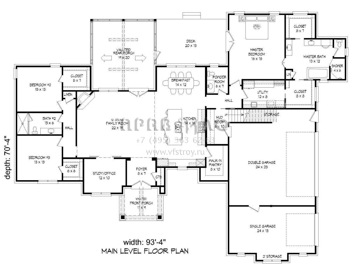 Проект одноэтажного дома с гаражом на три и более машин в американском стиле S5-321 (940-00074)