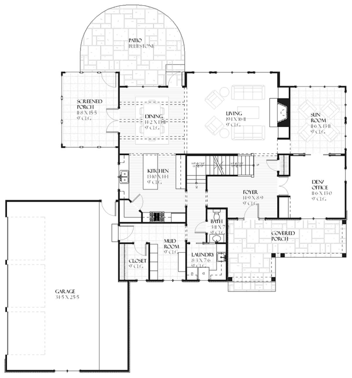 S5-322 (1637-00102) Это иностранный проект, для которого требуется адаптация под нормы, действующие в Российской Федерации. Вы видите проект дома в стиле Ранчо. В этом доме сочетаются черты сельской постройки и аскетичность лофта. Внутри жильцы смогут проводить время с максимальным комфортом. Обратим внимание, что сейчас на планировках все размеры представлены в футах. Для перевода в метры вам необходимо значение в футах умножить на 0,3048.