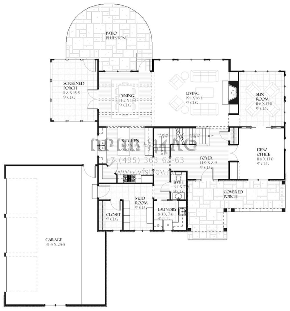 Поскольку этот проект разрабатывался иностранными архитекторами, для строительства дома требуется переработка проекта под действующие в России нормы. Данные визуализации проекта представлены для ознакомления с концепцией проекта. Проект разработан американским архитектурным бюро и представлен America's Best House Plans.