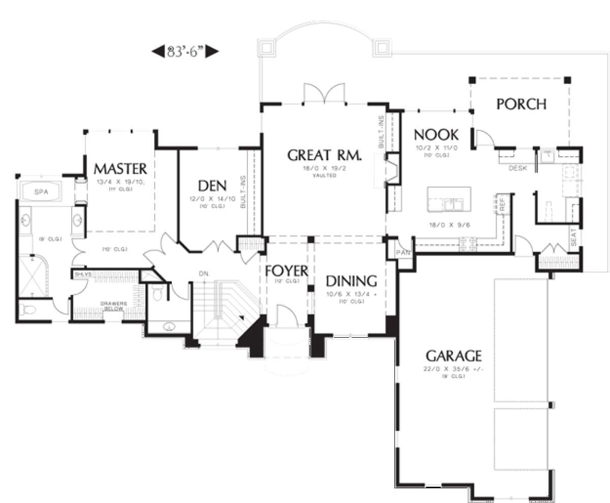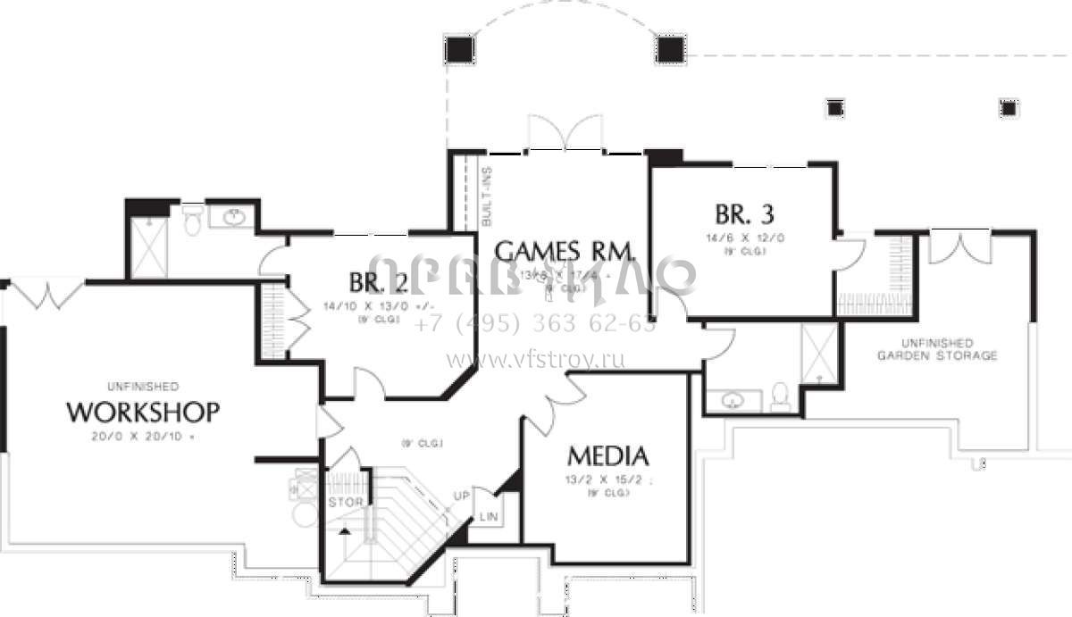 S5-322 (2559-00161) Это иностранный проект, для которого требуется адаптация под нормы, действующие в Российской Федерации. Вы видите проект дома в стиле Ранчо. В этом доме сочетаются черты сельской постройки и аскетичность лофта. Внутри жильцы смогут проводить время с максимальным комфортом. Обратим внимание, что сейчас на планировках все размеры представлены в футах. Для перевода в метры вам необходимо значение в футах умножить на 0,3048.