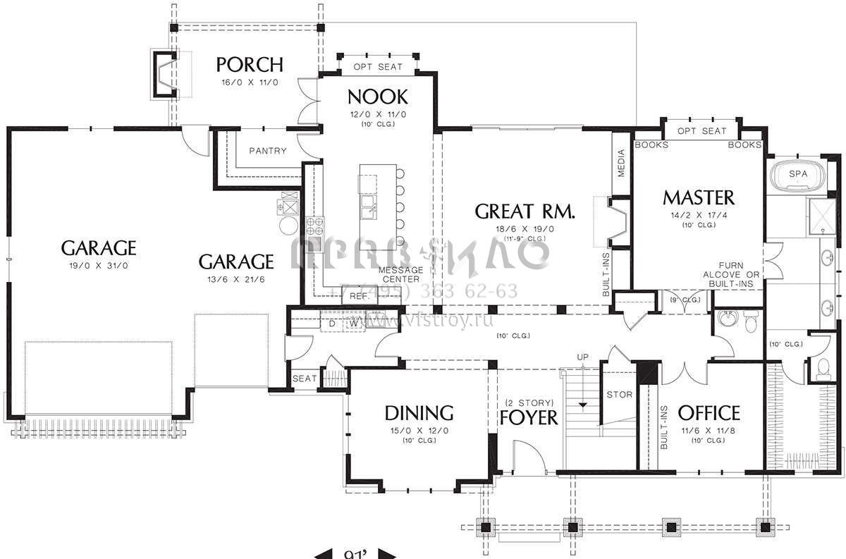 Проект двухэтажного дома с гаражом на три и более машин в американском стиле S5-322 (2559-00555)