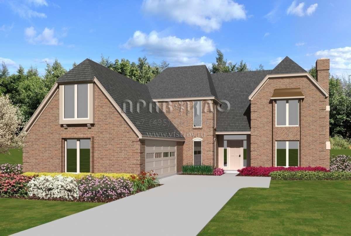 Проект двухэтажного дома с гаражом на две машины в стиле Ранчо S5-323 (053-02333)