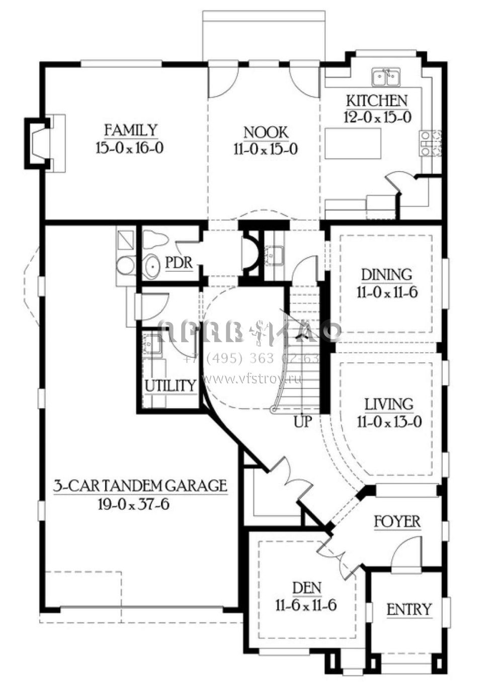 Проект двухэтажного дома с гаражом на три и более машин в английском стиле S5-323 (341-00144)