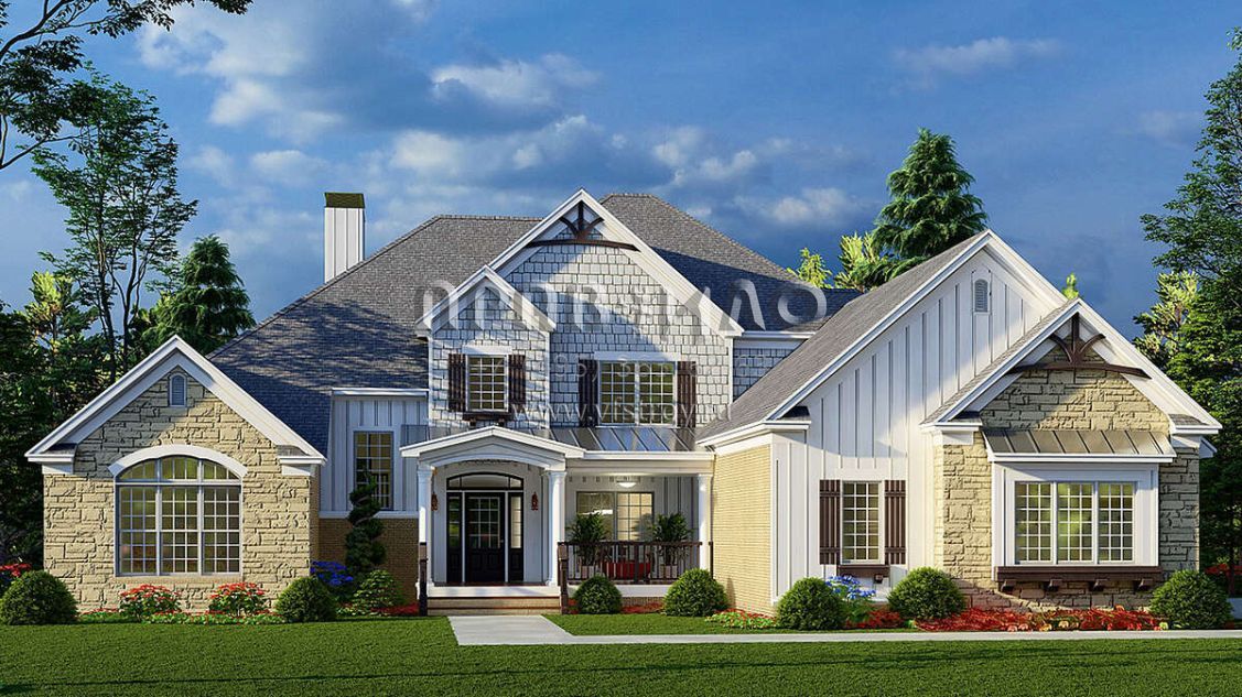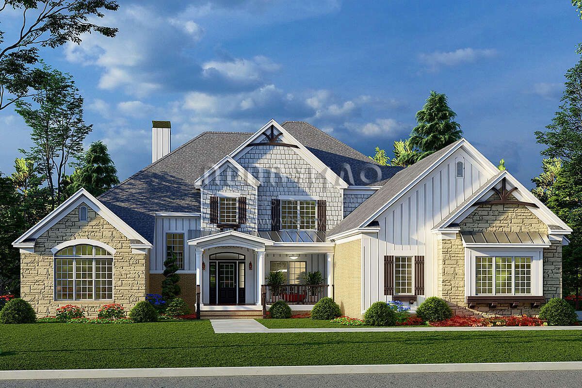 Проект двухэтажного дома с гаражом на три и более машин в американском стиле S5-323 (8318-00282)