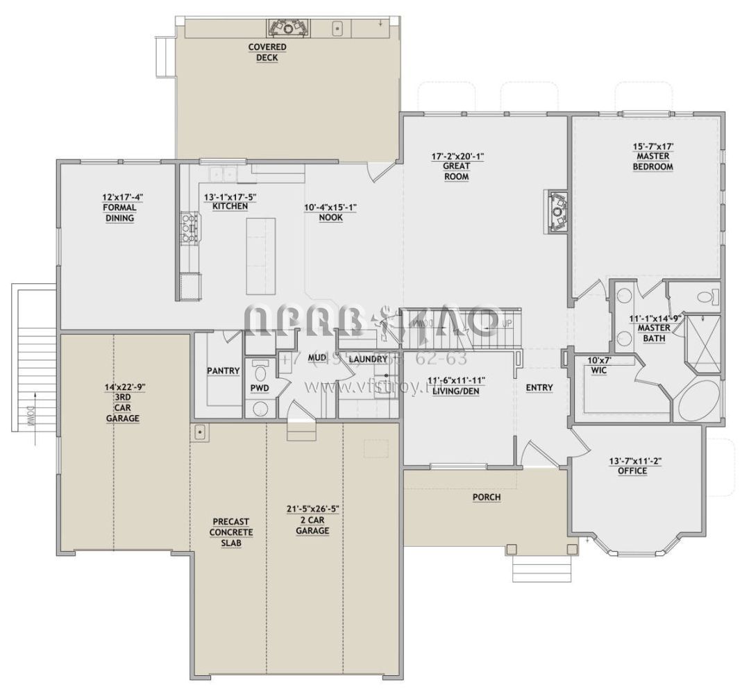 Проект двухэтажного дома с гаражом на три и более машин в стиле Ранчо S5-323 (8768-00126)