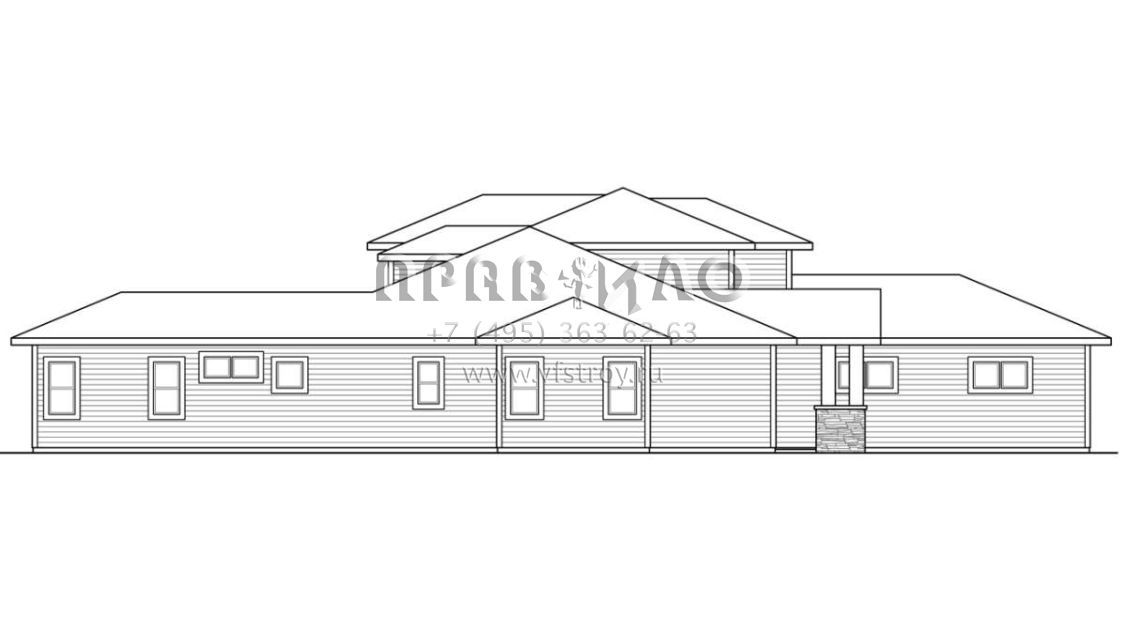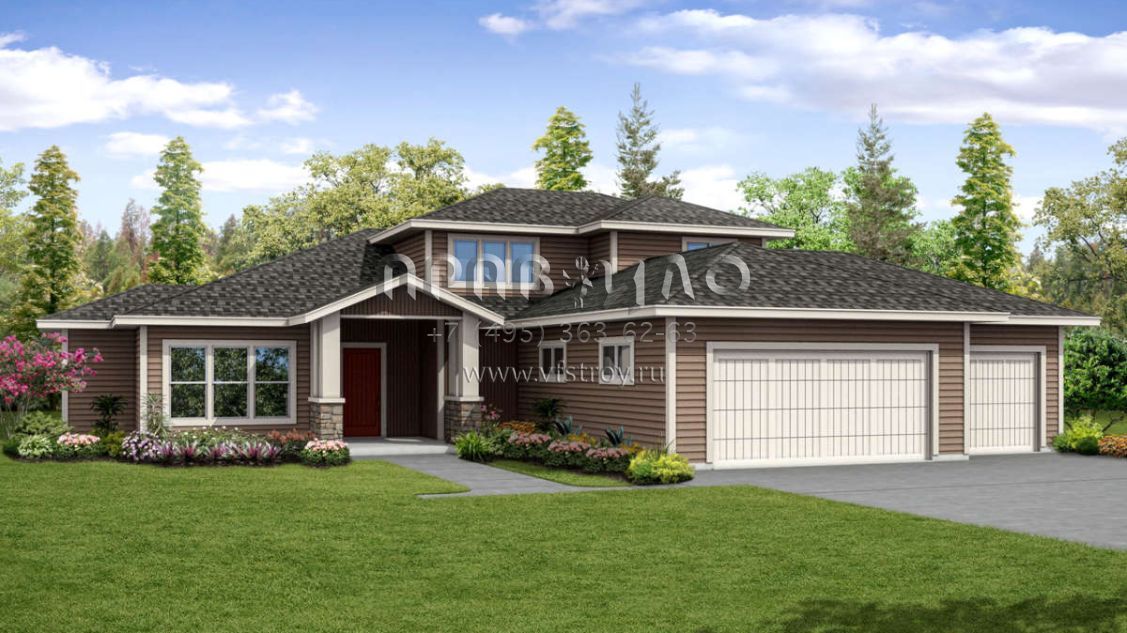 Проект одноэтажного дома с гаражом на три и более машин в стиле Райт S5-324 (035-00776)