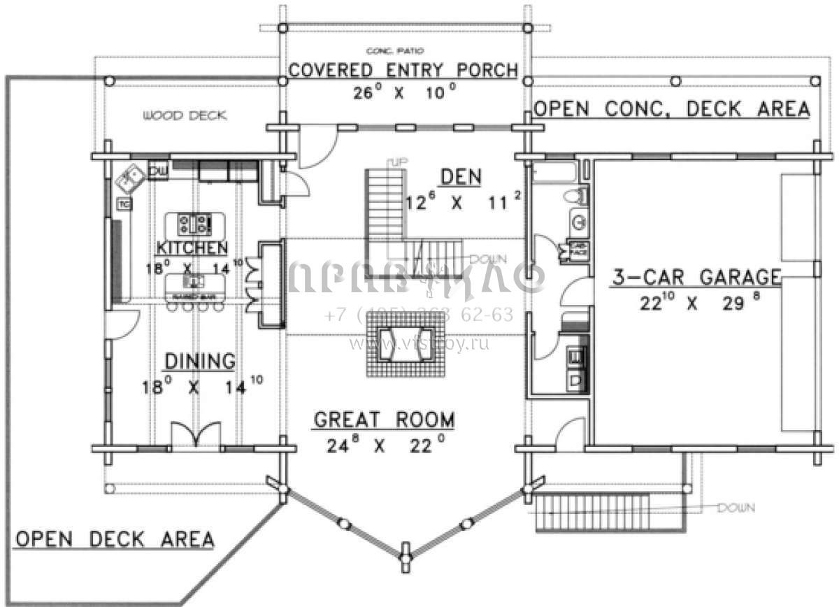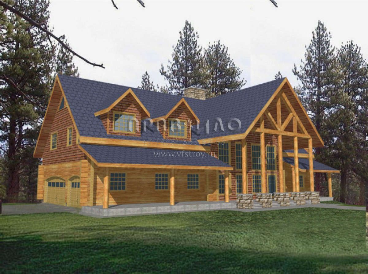 Проект двухэтажного дома с гаражом на три и более машин в русском стиле S5-324 (039-00029)