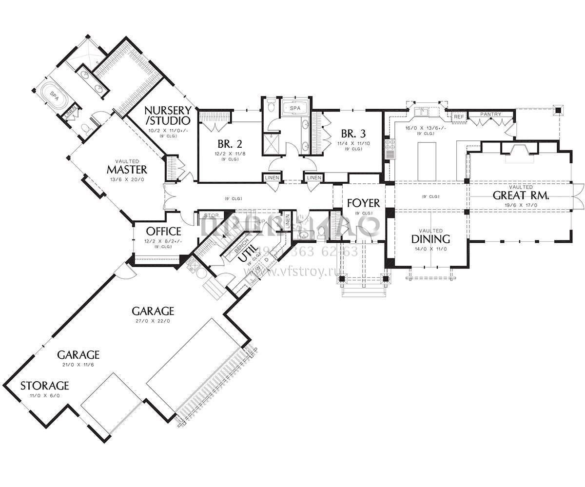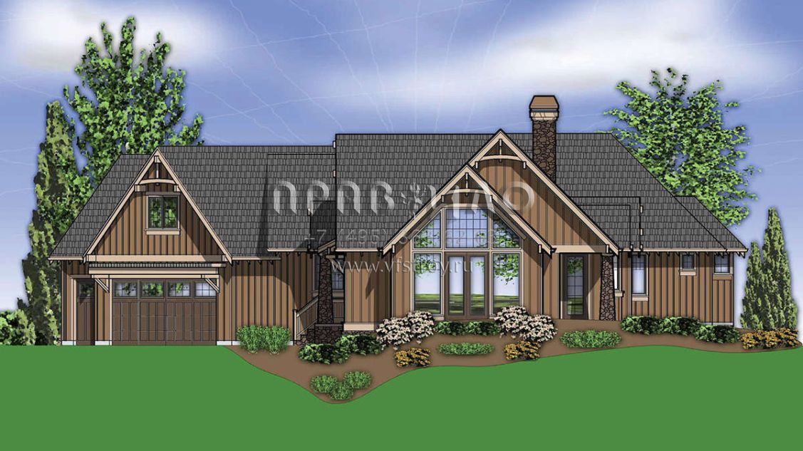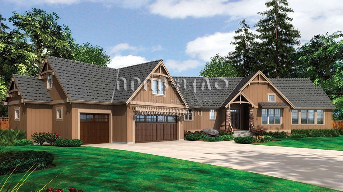 Проект одноэтажного дома с гаражом на три и более машин в американском стиле S5-324 (2559-00169)