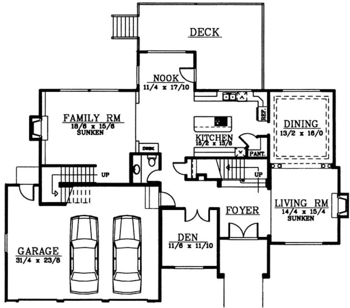 Проект двухэтажного дома с гаражом на три и более машин в стиле Ранчо S5-324 (692-00114)